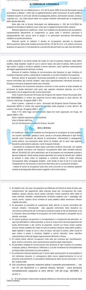 5️⃣ Il richiamo al Regolamento comunale con cui l’assessore motiva il rigetto è privo di fondamento in quanto lo stesso tratta di “occupazione suolo pubblico” cosa mai chiesta. Non ci saranno sedie, tavoli, ecc, come appunto ho specificato nella mia lettera.