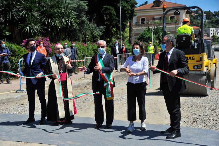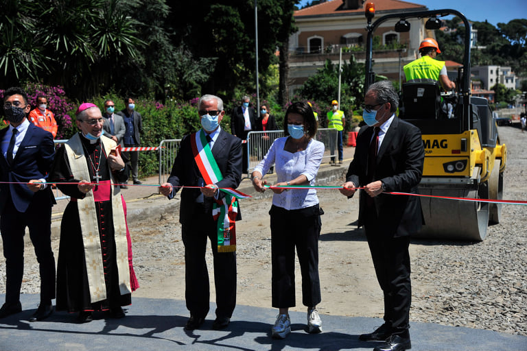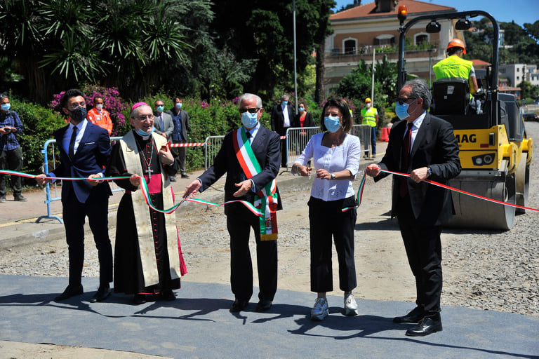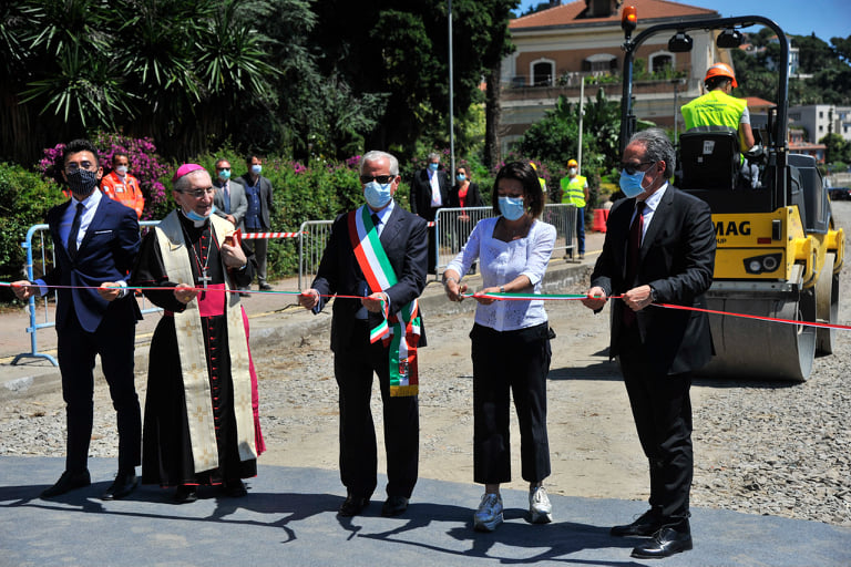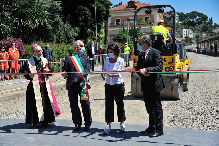 Imperia, pista ciclabile: Ministro De Micheli alla cerimonia del taglio del nastro