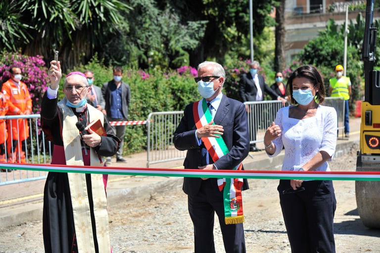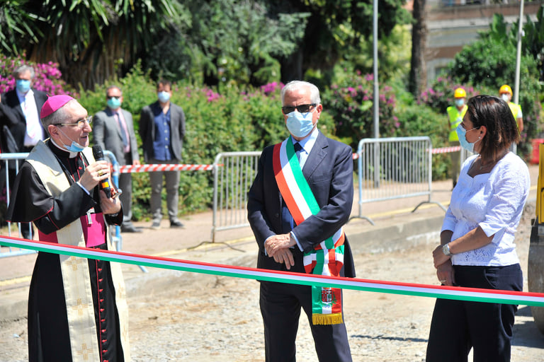 Dopo l’inno di Mameli e gli interventi dei presenti, si è proceduto al taglio del nastro e alla benedizione del cantiere da parte del vescovo Guglielmo Borghetti.