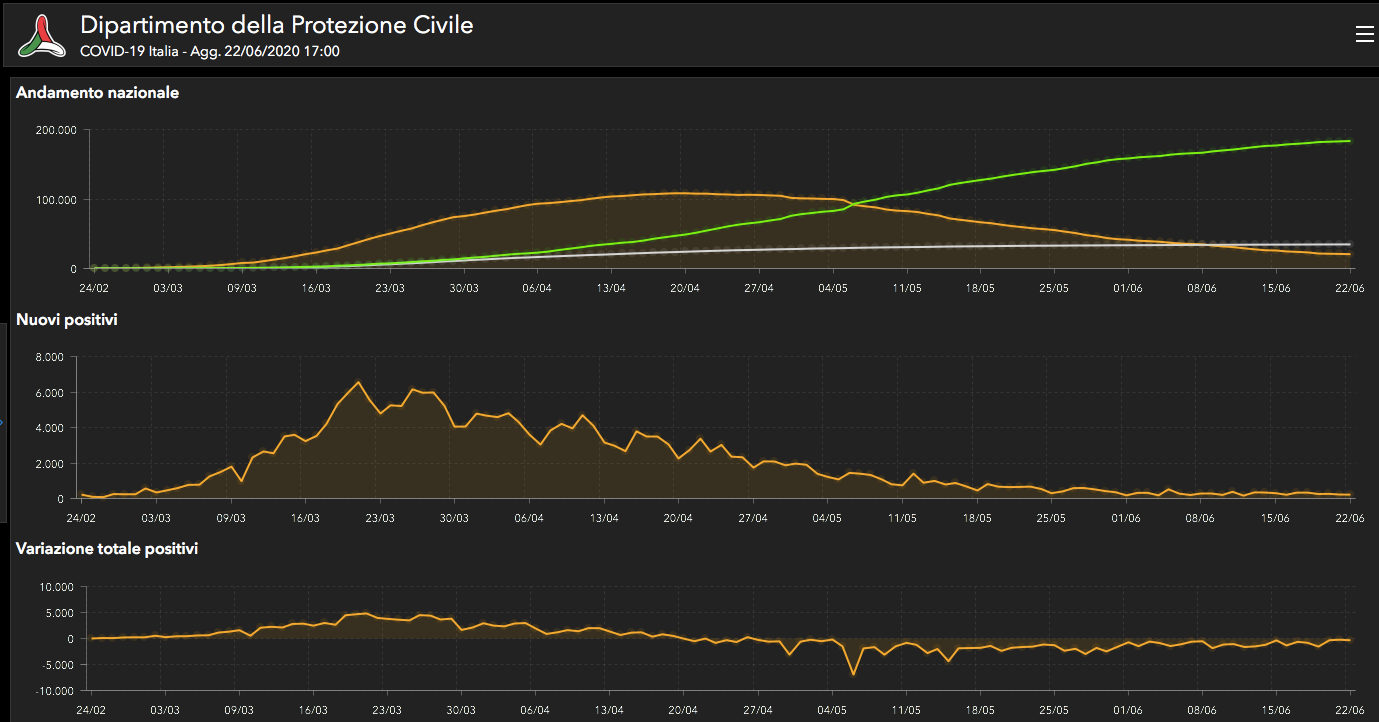 Coronavirus, Italia: il bollettino di lunedì 22 giugno