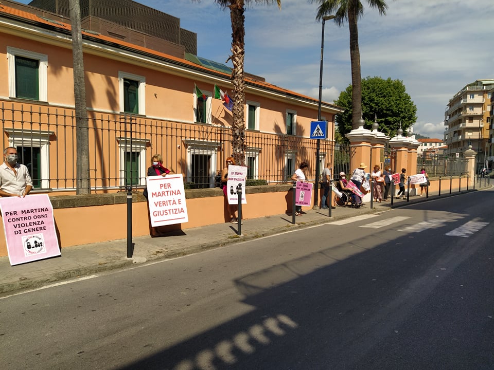 “Verità per Martina, giustizia per tutte”. Queste le parole che, stamattina, intonavano gli attivisti di Non Una di Meno davanti al Tribunale di Imperia, per chiedere giustizia per l’imperiese Martina Rossi, morta nel 2011 a seguito della caduta dal sesto piano dell’hotel di Palma di Maiorca, e per tutte le donne vittime di violenza.