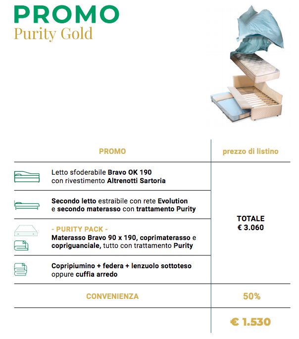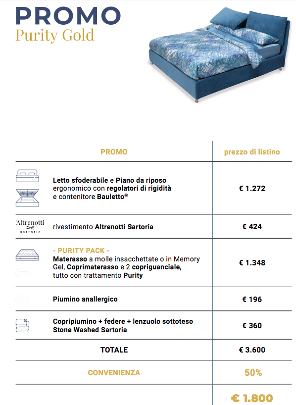 I letti di “Altrenotti” con Purity scontati del 50% da Artarreda a San Bartolomeo al Mare