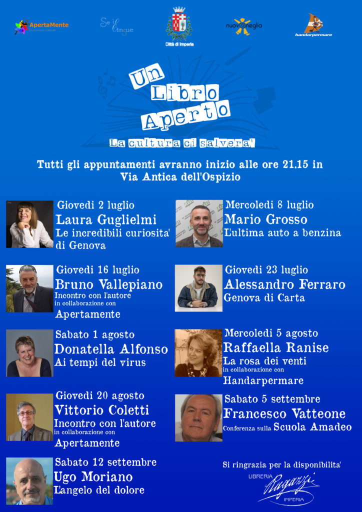 - Giovedì 20 agosto – incontro con Vittorio Coletti, in collaborazione con Apertamente Imperia