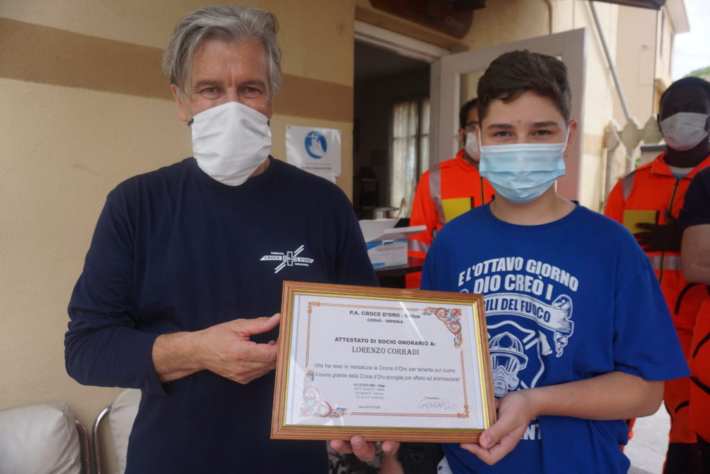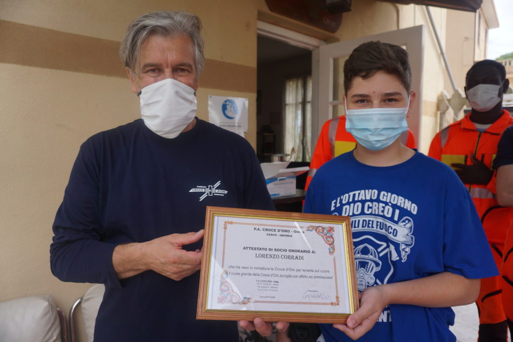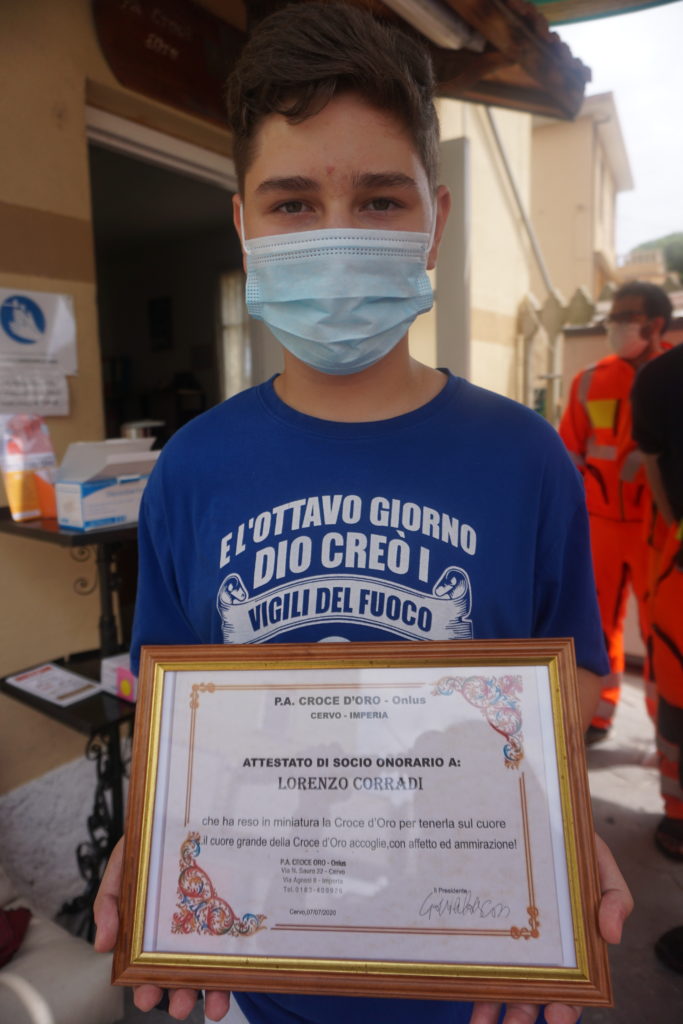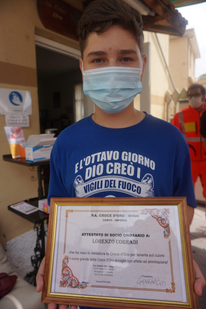Lorenzo diventa socio onorario della Croce d’Oro di Cervo a 14 anni