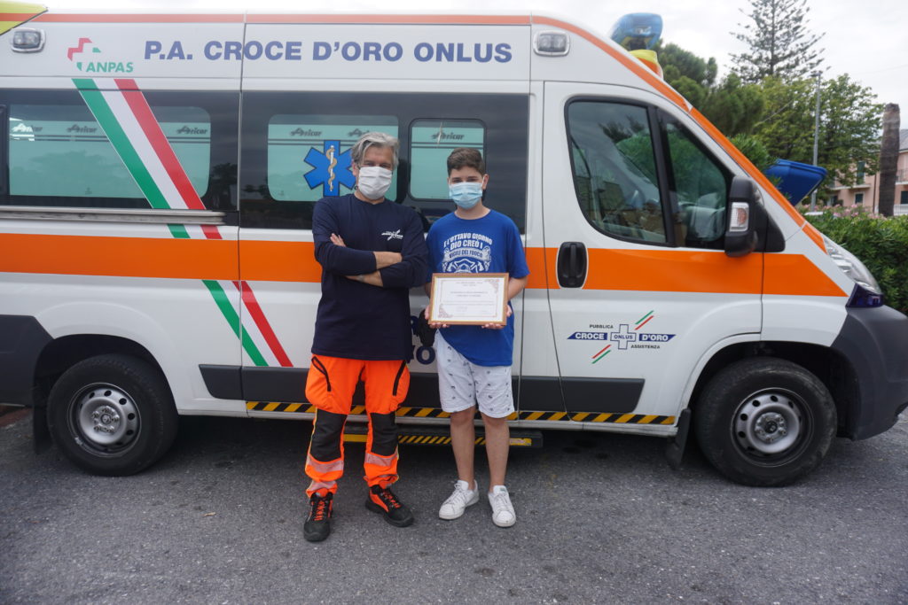 La sua storia, che ImperiaPost ha scoperto e raccontato recentemente, ha colpito profondamente la Croce d’Oro di Cervo. Per questo, i membri della pubblica assistenza hanno voluto omaggiare il giovanissimo imperiese con la nomina di Socio Onorario, un evento più unico che raro.