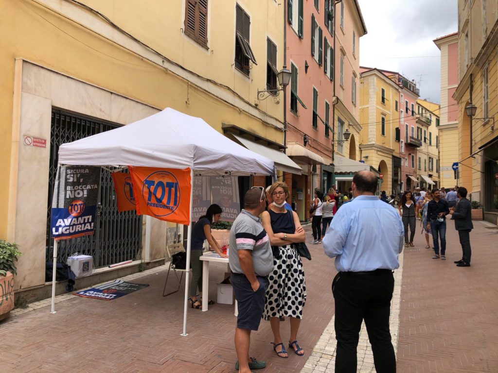 Blitz elettorale questa mattina in via San Giovanni a Oneglia per il presidente della Regione Liguria Giovanni Toti. Il leader di “Cambiamo”, accompagnato dall’assessore all’urbanistica Marco Scajola, ha fatto visita ai sostenitori della sua lista impegnati a raccogliere le firme per chiedere al Ministero delle Infrastrutture e dei trasporti di intervenire per rivedere il piano dei lavori sulla rete autostradale ligure che da settimane sta causando interminabili code e disagi per la popolazione.