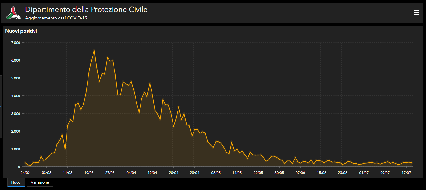 Coronavirus, Italia: il bollettino di domenica 19 luglio