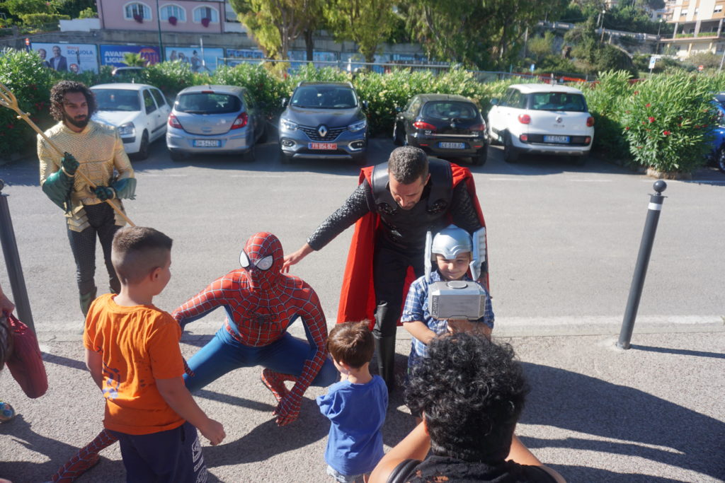 Dopo i selfie e le acrobazie, Spiderman (Mattia Villardita), Flash (il campione imperiese dei 400 metri Davide Re), Batman (Gaetano Villardita), Capitan America (Alessio Minuto), Thor (Luca Giusto) e Aquaman (Lorenzo Rognone) hanno ricevuto una targa di ringraziamento, corredata dalla scritta “Chi regala sorrisi è un vero supereroe”.