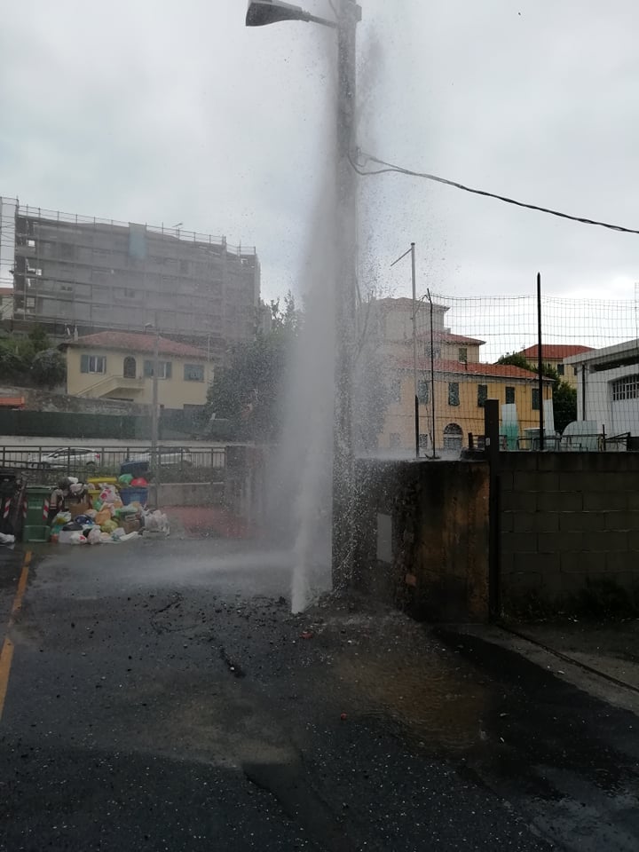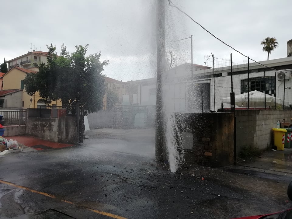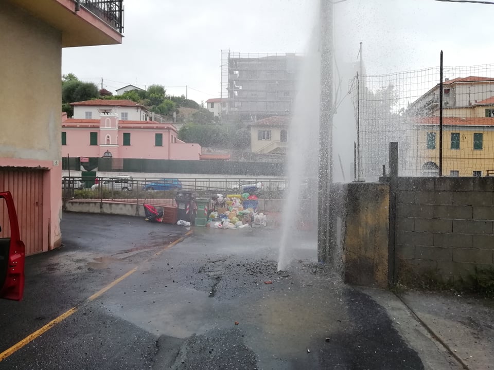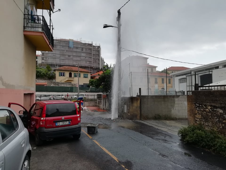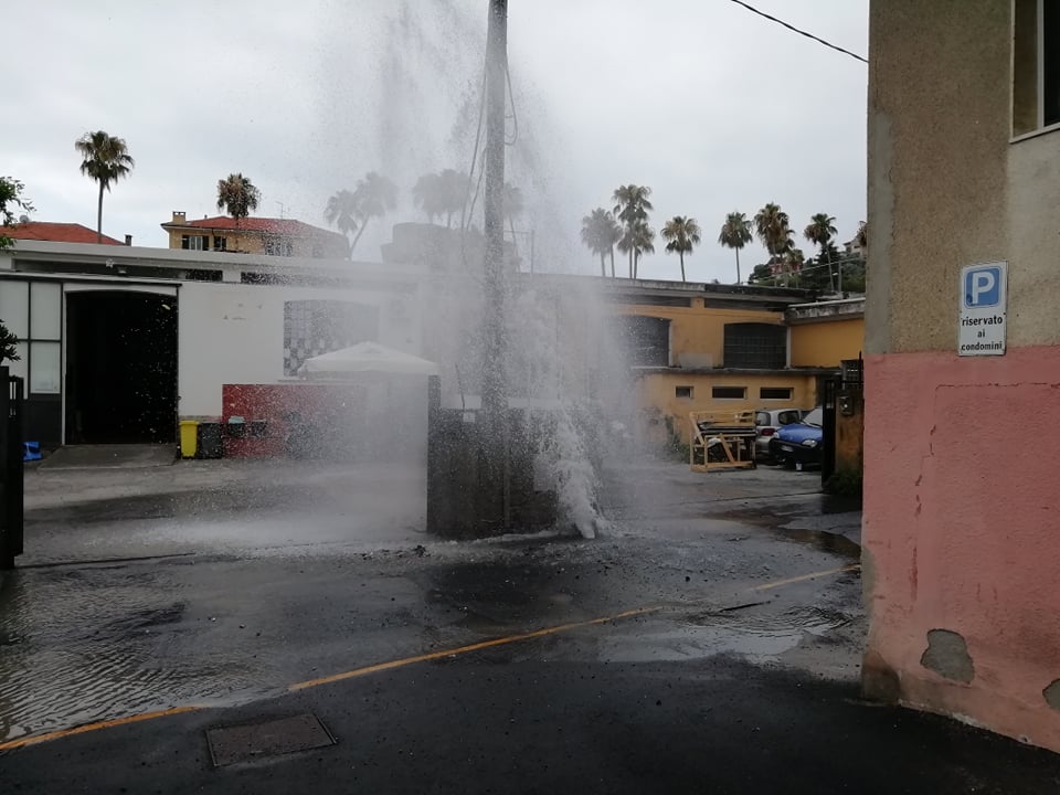 Geyser dall’asfalto a causa della rottura di un tubo dell’acquedotto. L’incidente si è verificato questa mattina in via Colombera a Porto Maurizio.