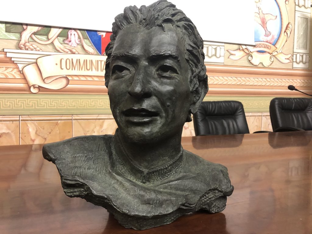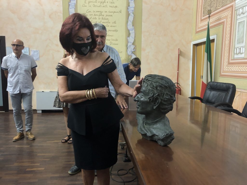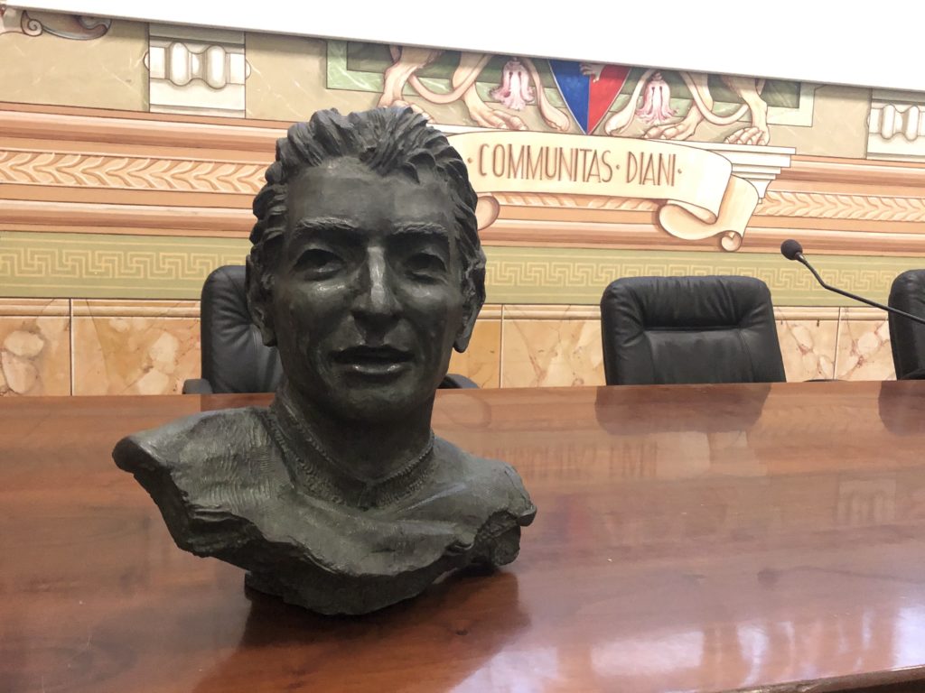 È stato presentato questa mattina, presso la sala consigliare del comune di Diano Marina, il busto in memoria di Felice Gimondi, alla presenza della moglie di origini dianesi, Tiziana Bersano e della figlia Norma. L’opera, commissionata dal Comune all’architetto-scultore imperiese Mario Clemente Rossi, sarà posizionata sabato 8 agosto alle ore 10 al Belvedere su Capo Berta dedicato ai campioni del ciclismo italiano, dove sono presenti i busti di Gino Bartali Fausto Coppi e Costante Girardengo.