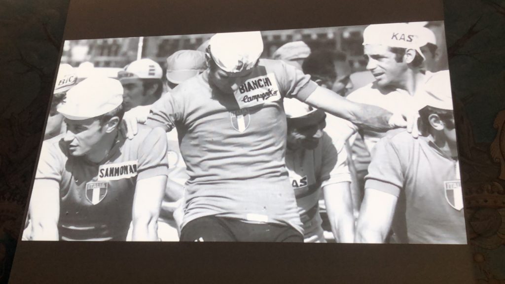 Nell’ambito della presentazione sono è stato visionato un video che ha raccontato i momenti più importanti della carriera del grande ciclista. Gimondi, molto legato a Diano Marina, è scomparso l’estate scorsa in Sicilia mentre era in vacanza all’età di 77 anni assieme alla moglie Tiziana Bersano.