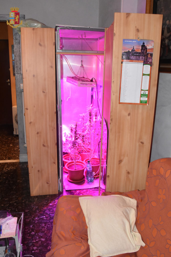 Infatti, oltre ad alcune piccole serre per le piante suddivise a seconda della loro diversa crescita vegetativa, l’uomo, dimostrando la propria abilità e conoscenza della nella materia aveva creato anche una camera di “maturazione” con luci ultraviolette e sistema temporizzato, occultata in un vano ricavato dietro un mobile; recuperato e sequestrato anche il raccolto già pronto per il consumo, circa 50 grammi di sostanza.