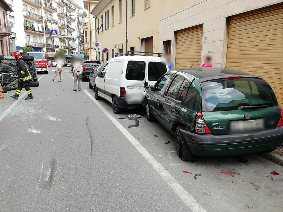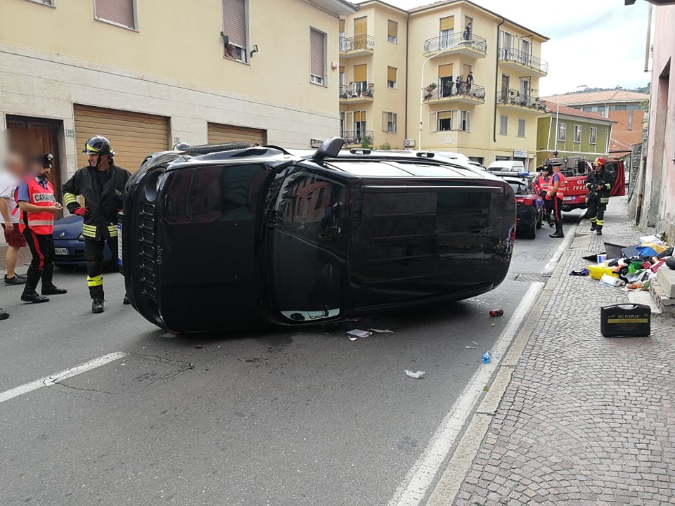 Imperia: auto si cappotta in via Nazionale