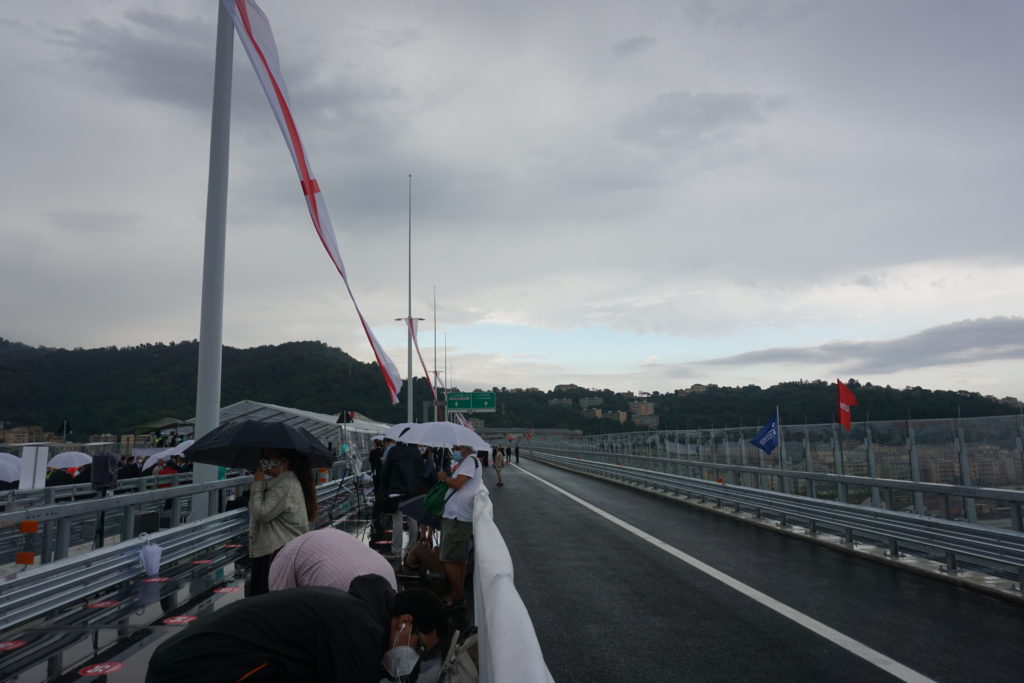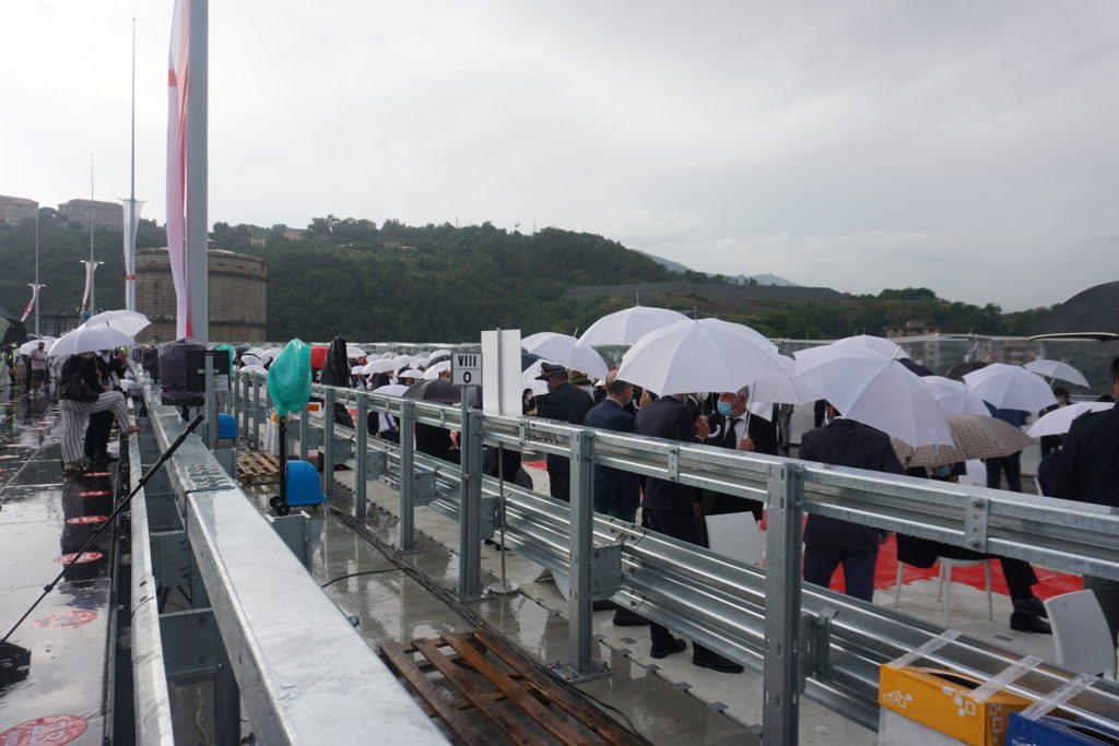 “Questo ponte è figlio di un lutto, e il lutto non si dimentica, si elabora. Qui su questo ponte ci siamo tutti smarriti. Qui ci ritroviamo per ringraziare chi lo ha costruito con rapidità. Siamo sospesi tra tragedia e orgoglio – ha affermato Renzo Piano – ma non parliamo di miracolo. Qui è successa una cosa bella per tutto il Paese. Costruire è una magia. È bellissimo costruire i ponti, non i muri, è un gesto di pace.