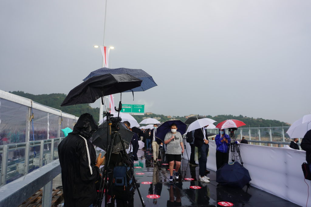 La giornata, iniziata con la pioggia che ricordava i drammatici momenti del crollo del Ponte Morandi, si è conclusa con un commovente arcobaleno, che ha lasciato tutti i presenti a bocca aperta.