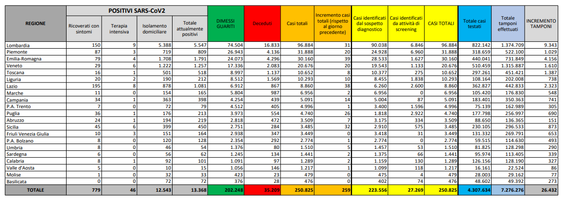Sono tre le regioni/province autonome che nelle ultime 24 ore non hanno fatto registrare nuovi casi di Coronavirus: Friuli Venezia Giulia, Molise e Basilicata.