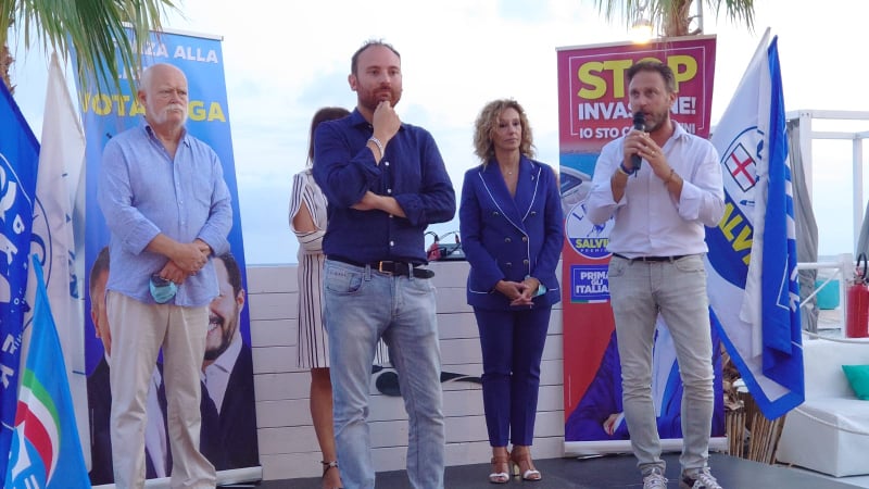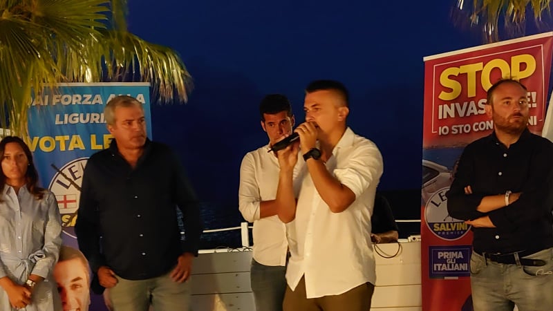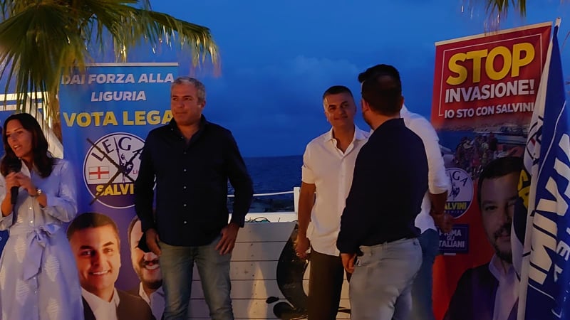 Presenti gli europarlamentari Isabella Tovaglieri e Marco Campomenosi, il Parlamentare Flavio Di Muro, il vice ministro a Infrastrutture e Trasporti e segretario regionale Edoardo Rixi e il vice segretario federale della Lega Andrea Crippa.