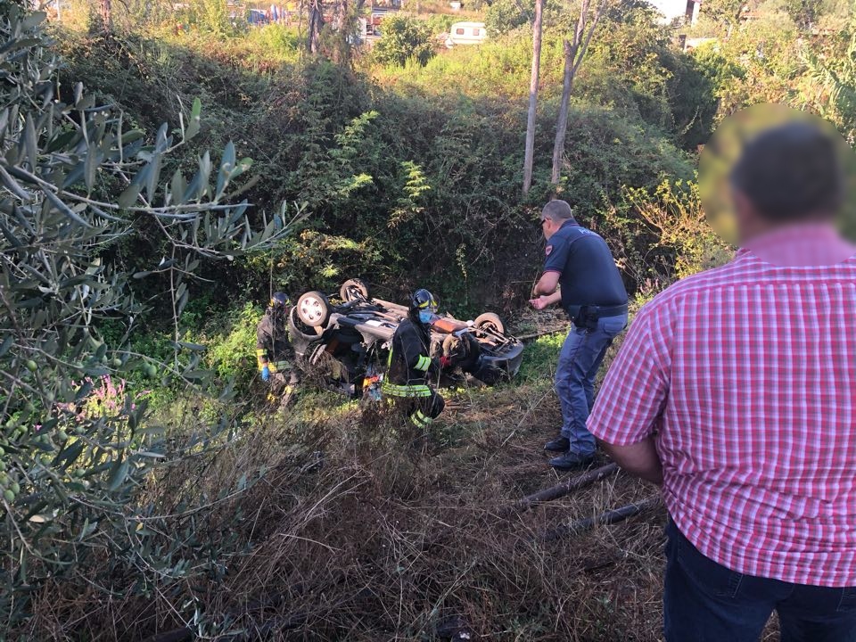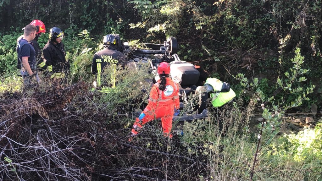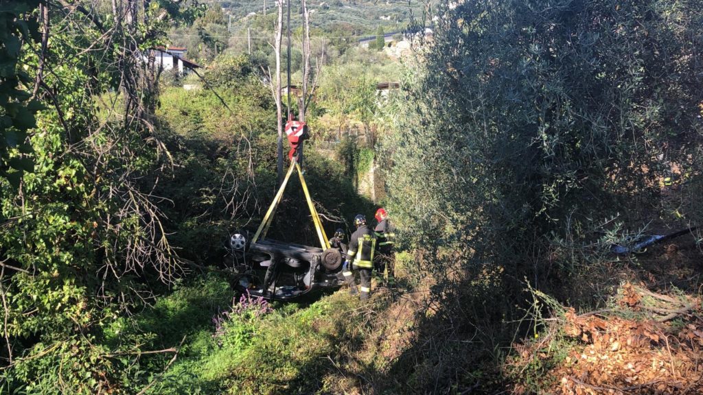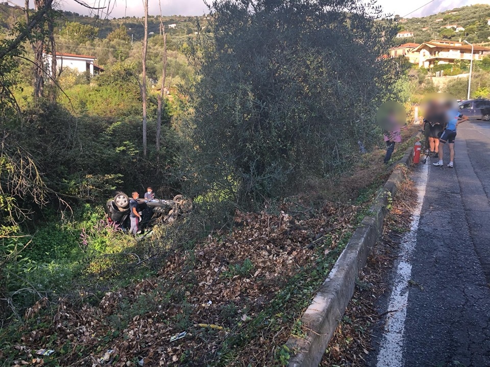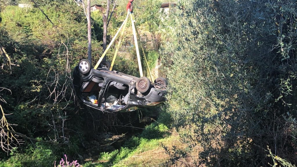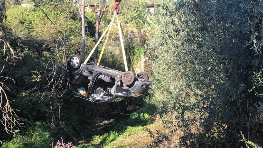 Mobilitazione di soccorsi questa mattina, in località Clavi, a Imperia, per un’auto, una Chevrolet Matiz, precipitata in un fossato nei pressi dello sferisterio comunale.