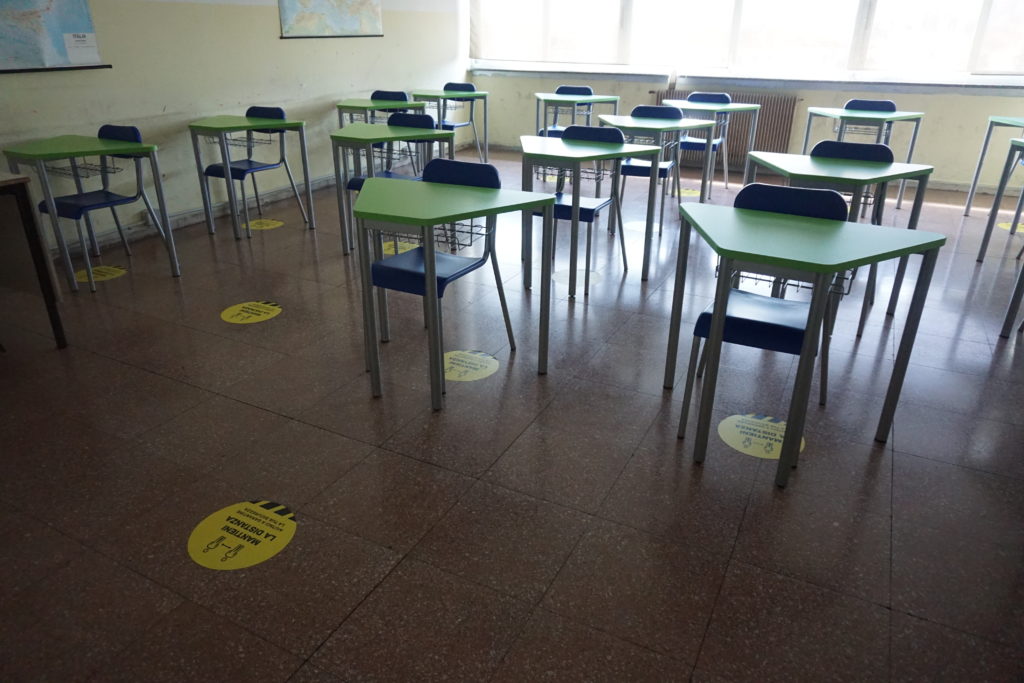 Aspetto fondamentale per il rientro, è la formazione di personale, docenti e studenti. Il dirigente scolastico Luca Ronco, che oggi ci accompagna all’interno dell’Istituto, si occuperà personalmente della formazione degli studenti sulle procedure anti Covid il primo giorno di scuola, classe per classe.