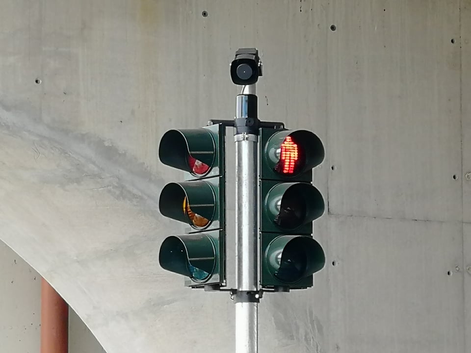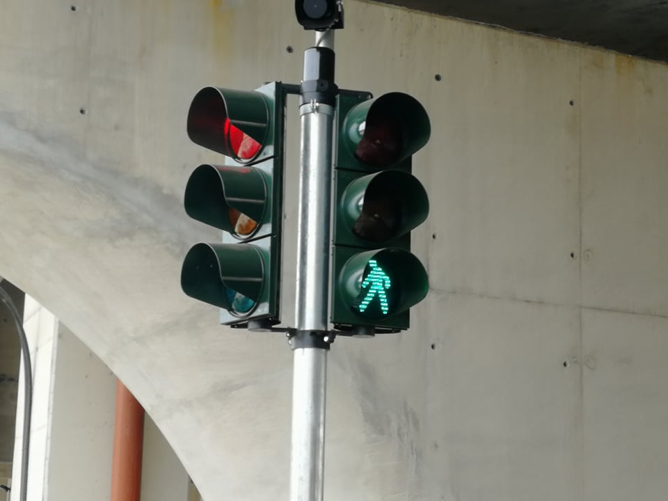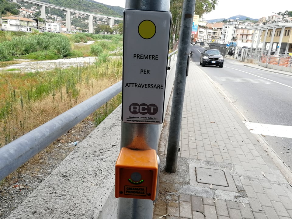 L’impianto semaforico ha anche un pulsante a chiamata per consentire ai pedoni di attraversare la strada in sicurezza. Una volta attivo, tutti e 4 i semafori verranno bloccati.