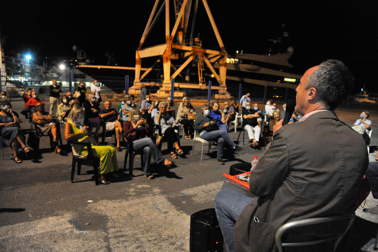 Grande affluenza di pubblico ieri sera, mercoledì 9 settembre in Banchina Aicardi, per il confronto tra il candidato presidente della Regione Liguria, Ferruccio Sansa, e il prof. Vittorio Coletti, editorialista de La Repubblica.