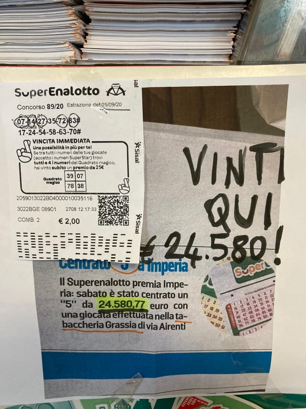 La lotteria più amata d’Italia, il SuperEnalotto, bacia Imperia. Nei giorni scorsi, infatti, un’anziana signora ha vinto 24.580 euro.