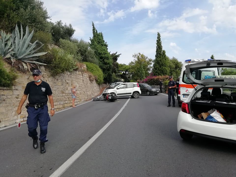 Incidente stradale questo pomeriggio su Capo Berta, a Imperia. Per cause ancora in via di accertamento, forse a causa di una manovra azzardata, un’auto e uno scooter si sono scontrati.
