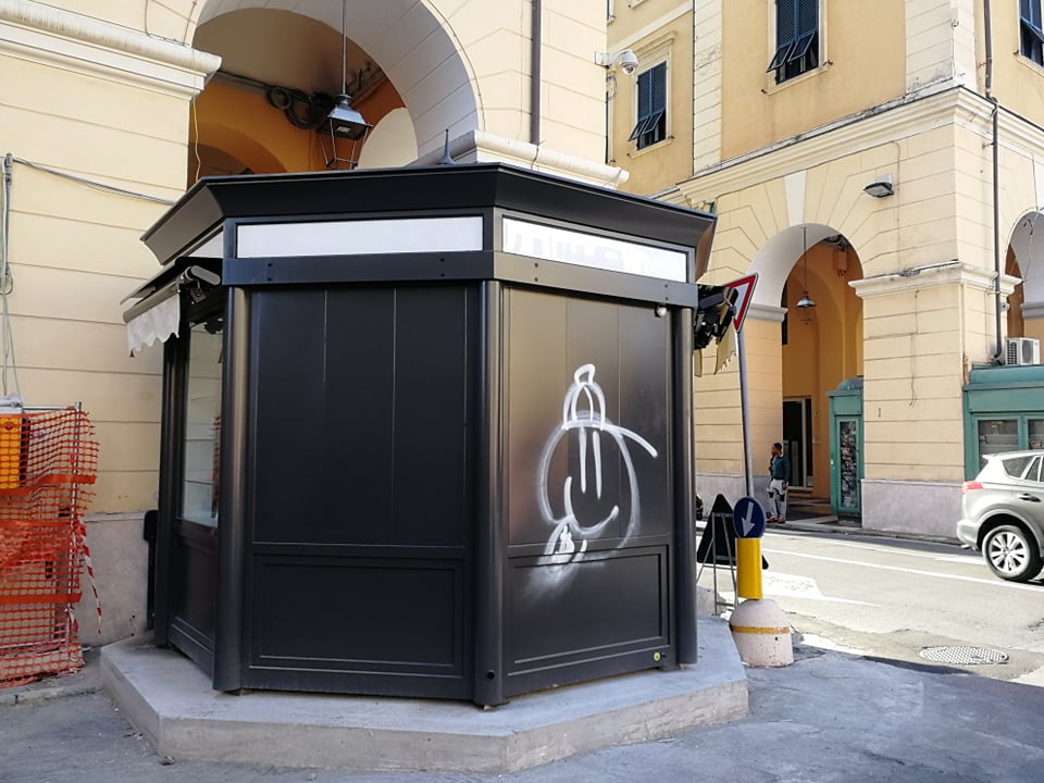 “La mamma degli scemi è sempre incinta”, questo detto popolare ci pare essere il più appropriato per l’autore dell’atto vandalico perpetrato nella notte in piazza Dante a Oneglia. A farne le spese la nuova edicola posizionata nella serata dello scorso 8 settembre da parte dell’amministrazione comunale. Ignoti hanno disegnato con una bomboletta spray una zucca su un lato dell’edicola.