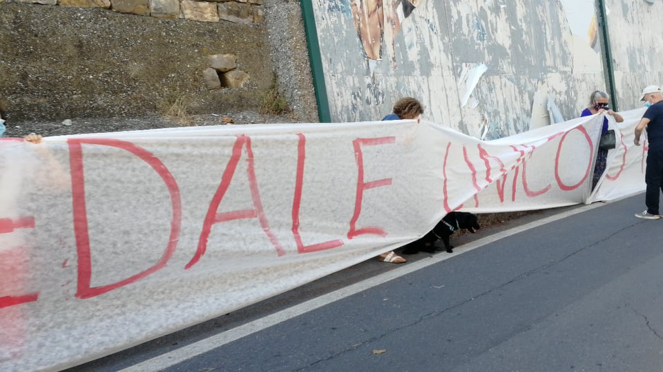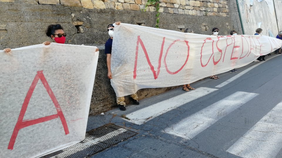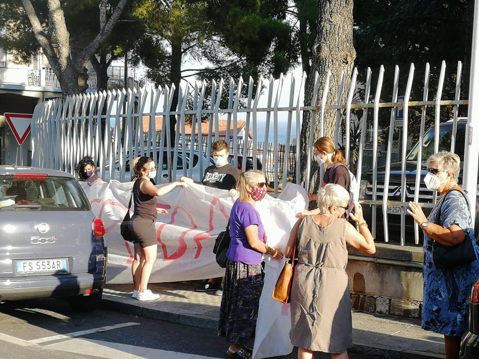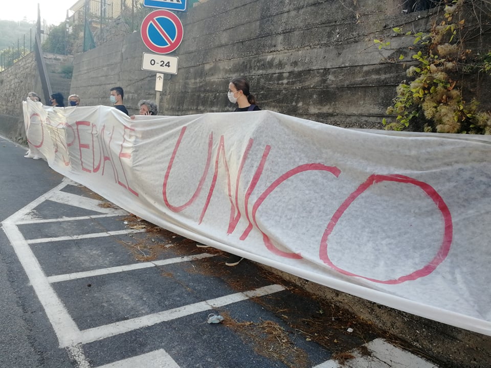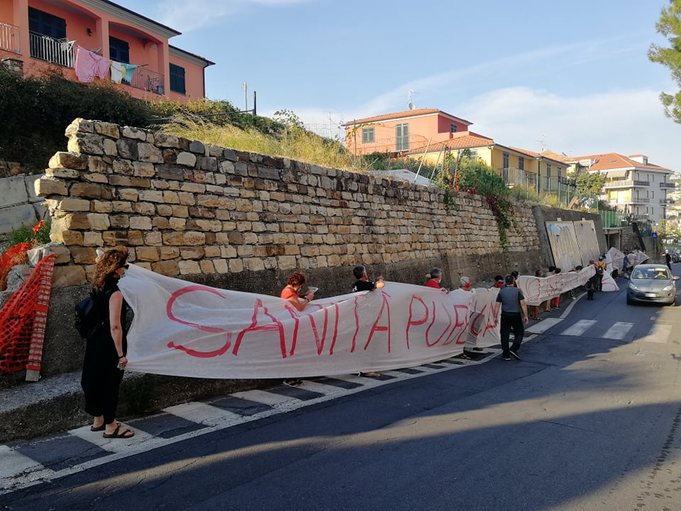 I presenti, circa 40 attivisti, hanno esposto grandi striscioni per una lunghezza di 80 metri rimarcando la propria contrarietà sul progetto dell’Ospedale Unico di Taggia. “No Ospedale Unico, no alle privatizzazioni”, si legge sugli striscioni.