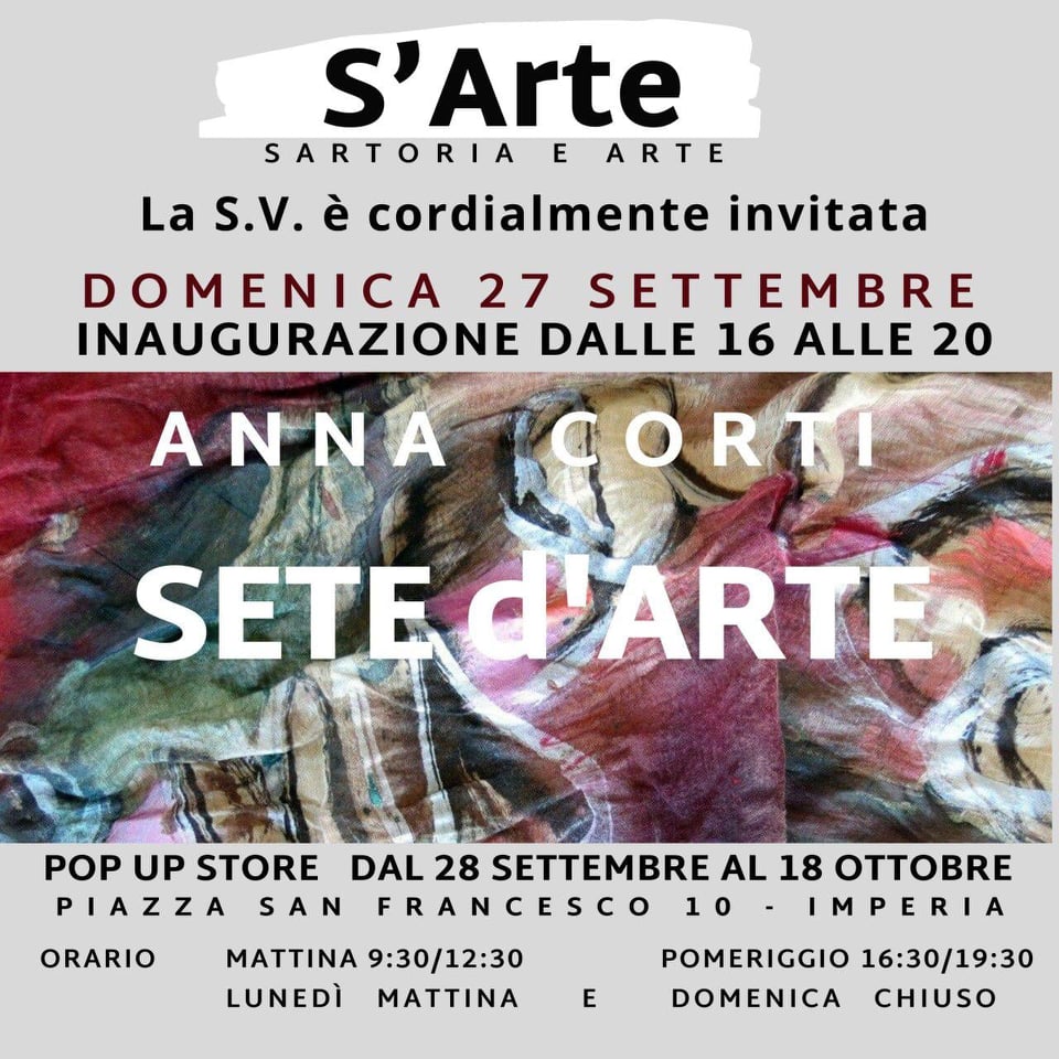 Inaugurata in Piazza San Francesco, a Imperia, presso la galleria “S’Arte” di Maria Nella Ponte, l’esposizione artistica di Anna Corti.