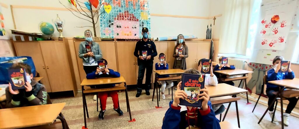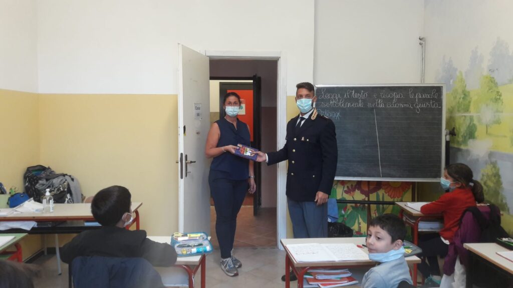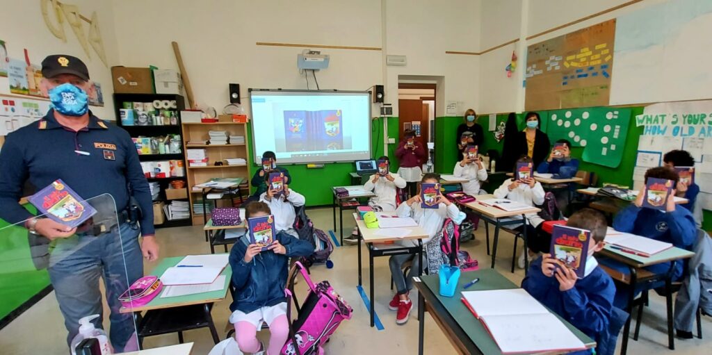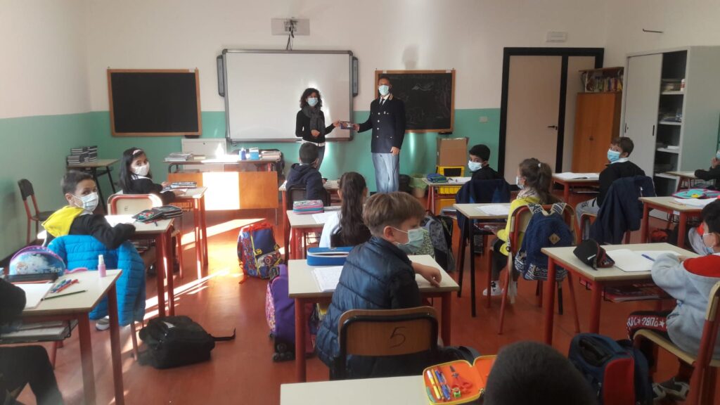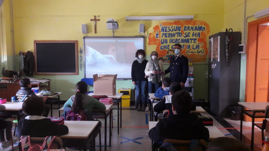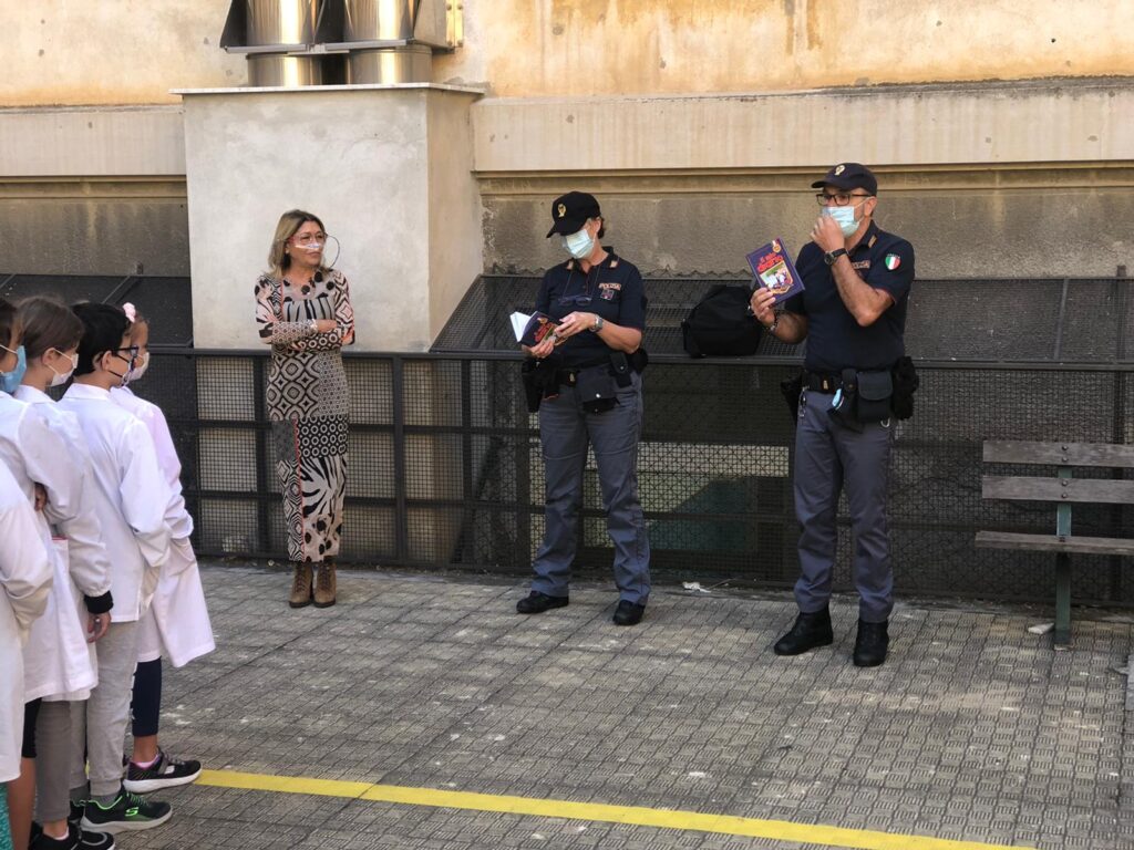 Gli alunni e le maestre, nel pieno rispetto delle norme per prevenire la diffusione del contagio da Covid-19, hanno assistito e partecipato alla presentazione del progetto insieme ai poliziotti.