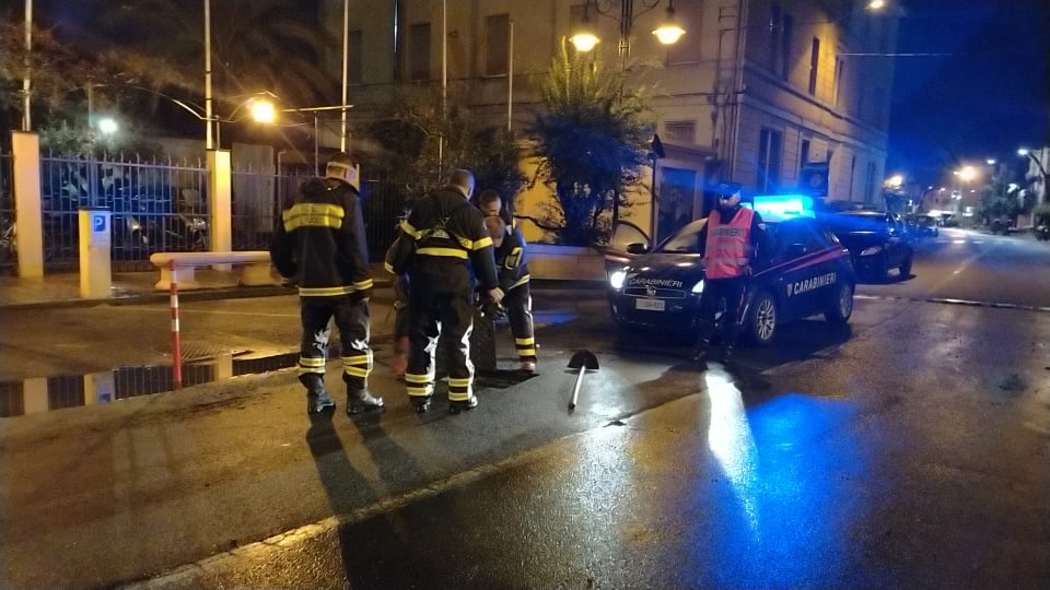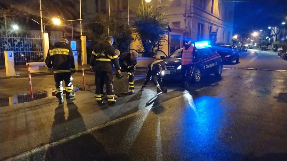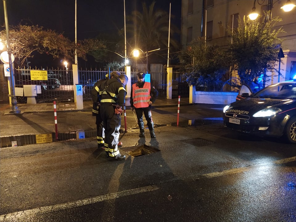 Coadiuvati dai Carabinieri i Vigili del Fuoco sono intervenuti anche in via Scarincio a causa dell’esplosione di due tombini, uno dei quali ha colpito un’auto in transito, per fortuna senza gravi conseguenze.