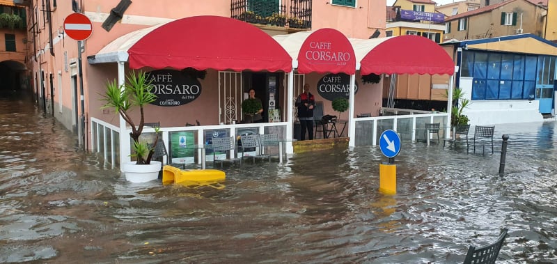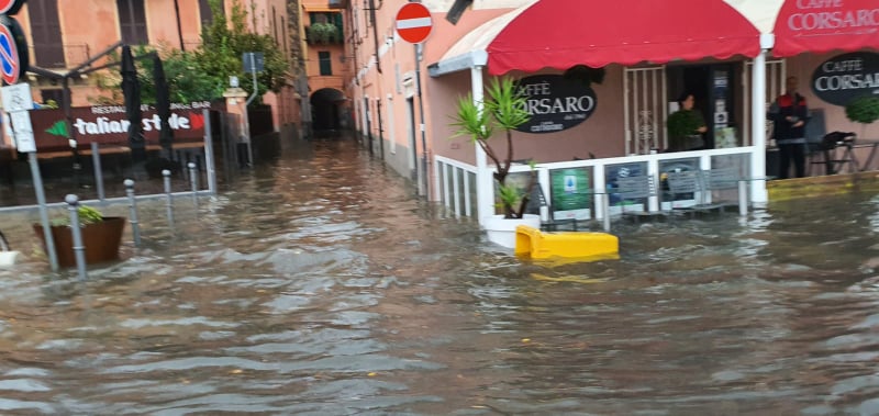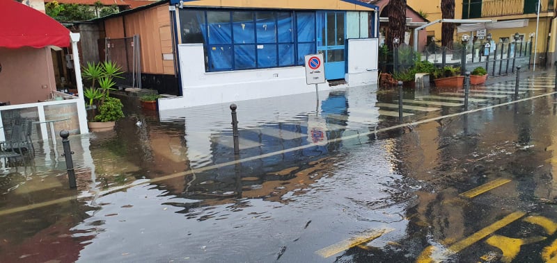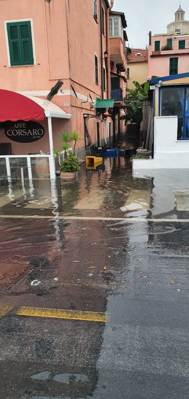 Cessata la prima ondata di maltempo, a Imperia si inizia a fare la conta dei danni. A Borgo Marina, nei pressi del Bar Corsaro, la strada si è completamente allagata, forse anche a causa della scarsa manutenzione dei tombini, con un fiume di acqua alto circa mezzo metro.
