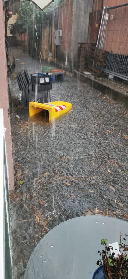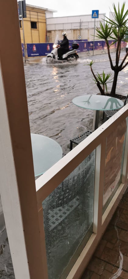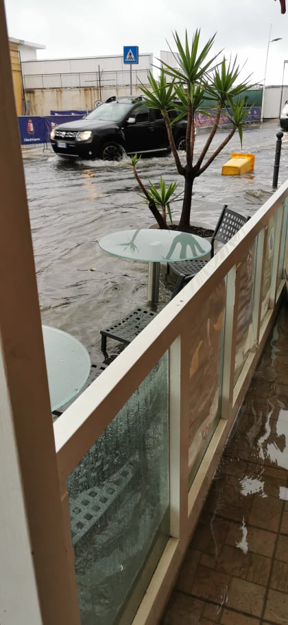 Il fiume d’acqua, per via della pendenza dell’asfalto, si è riversato all’interno del Bar Corsaro, allagandolo completamente.