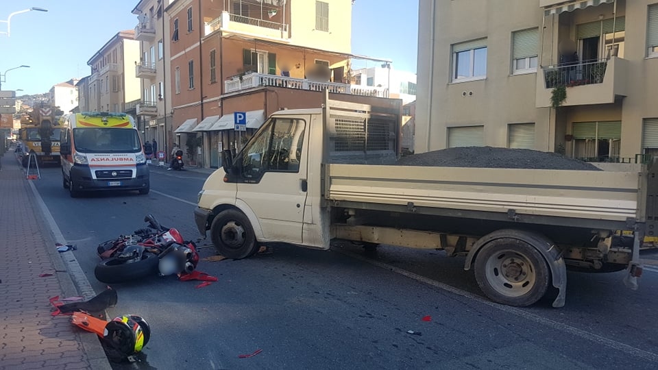Secondo quanto ricostruito, la moto, proveniente da Pontedassio, con a bordo un uomo e una donna, si è scontrata con un camion di una ditta edile, che, proveniente da Oneglia, stava compiendo una manovra.