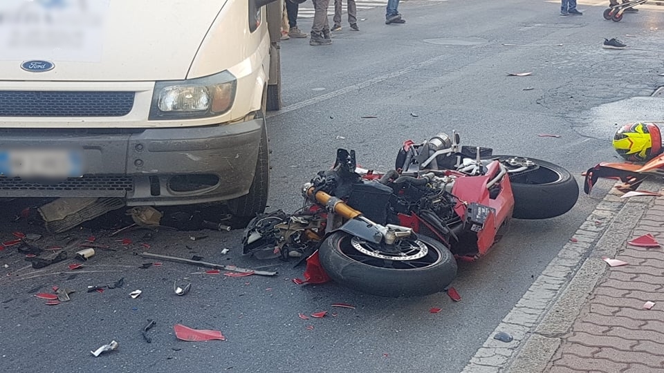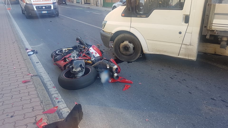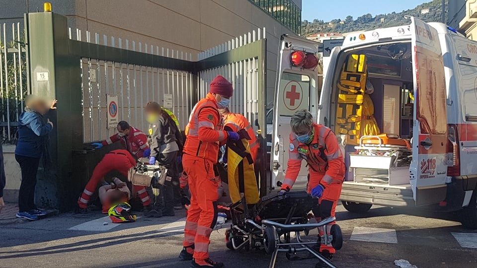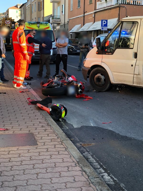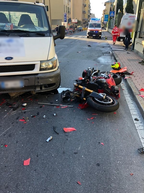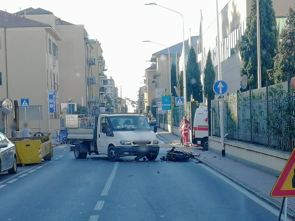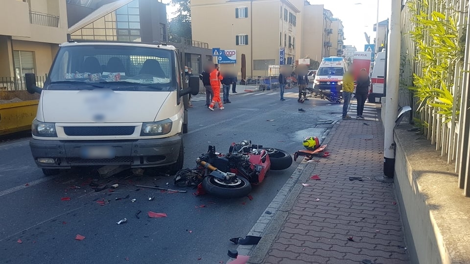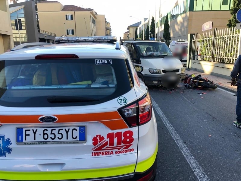 Drammatico incidente stradale questa mattina in via Garessio, a Imperia. Un furgone e una moto si sono scontrati violentemente, due i feriti.
