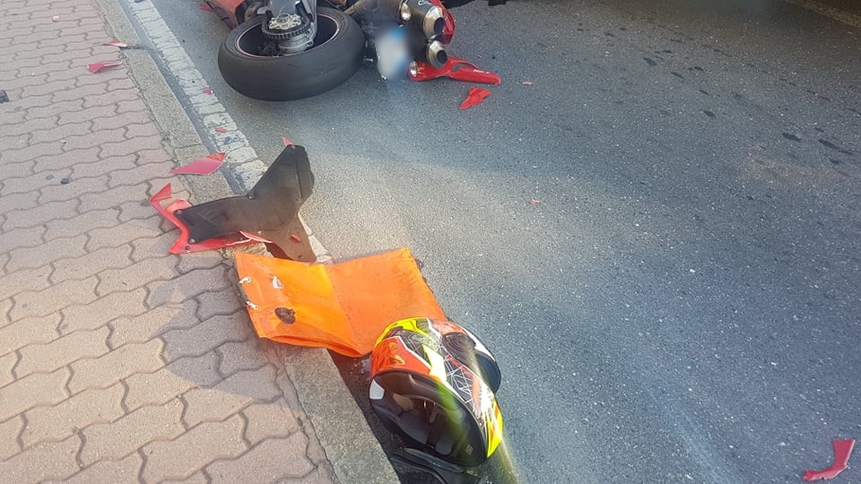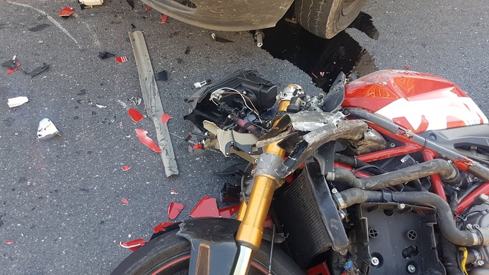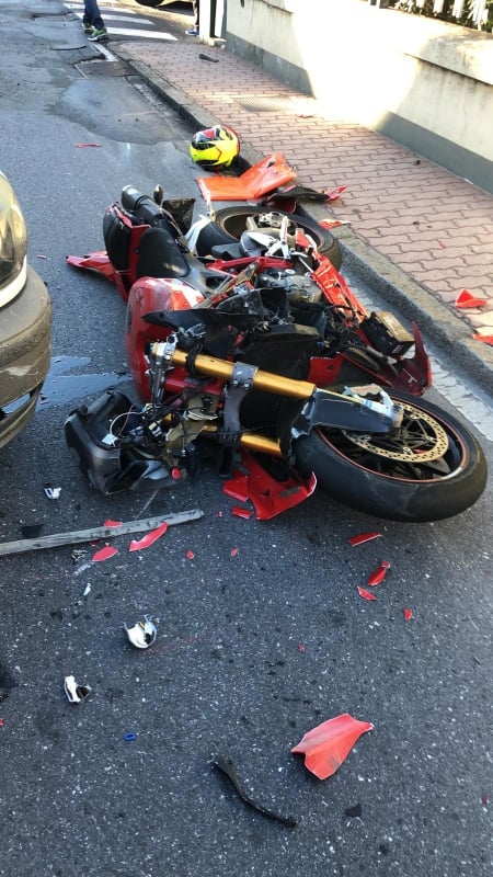 L’impatto è stato violentissimo e i due a bordo della moto sono rovinati a terra, scivolando per alcuni metri prima di finire contro il muretto a bordo strada.