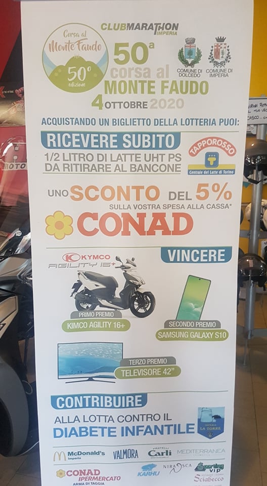 Per l’occasione è stata organizzata anche una lotteria per sostenere la lotta al diabete infantile. Il primo premio in palio, un Kimko Agility 16+, è stato vinto da Elena Pizio, e il secondo, un Samsung Galaxy S10, da Manuela Pierani. Entrambi sono stati consegnati oggi presso la QuadTeca di via Garessio, alla presenza del presidente Marathon Club di Imperia William Stua.