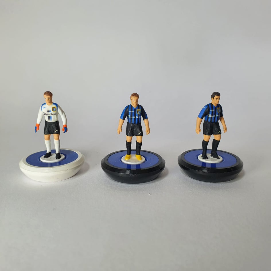 Da parecchi mesi, prima ancora dello stop dei campionati e la promozione in serie D dell’Imperia, mi era venuta l’idea di riprodurre l’intera rosa che stava lottando per vincere il campionato, e così mi sono messo in contatto con Andrea di @figuresfortablesoccer , un ragazzo cordiale e soprattutto paziente. L’ho riempito di foto, di mail, di messaggi. Ha ascoltato ogni mia richiesta, dal tatuaggio del capitano al codino dei capelloni, ogni cosa. E lo ringrazio per tutto!