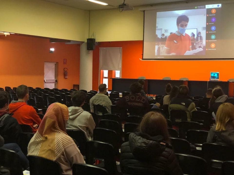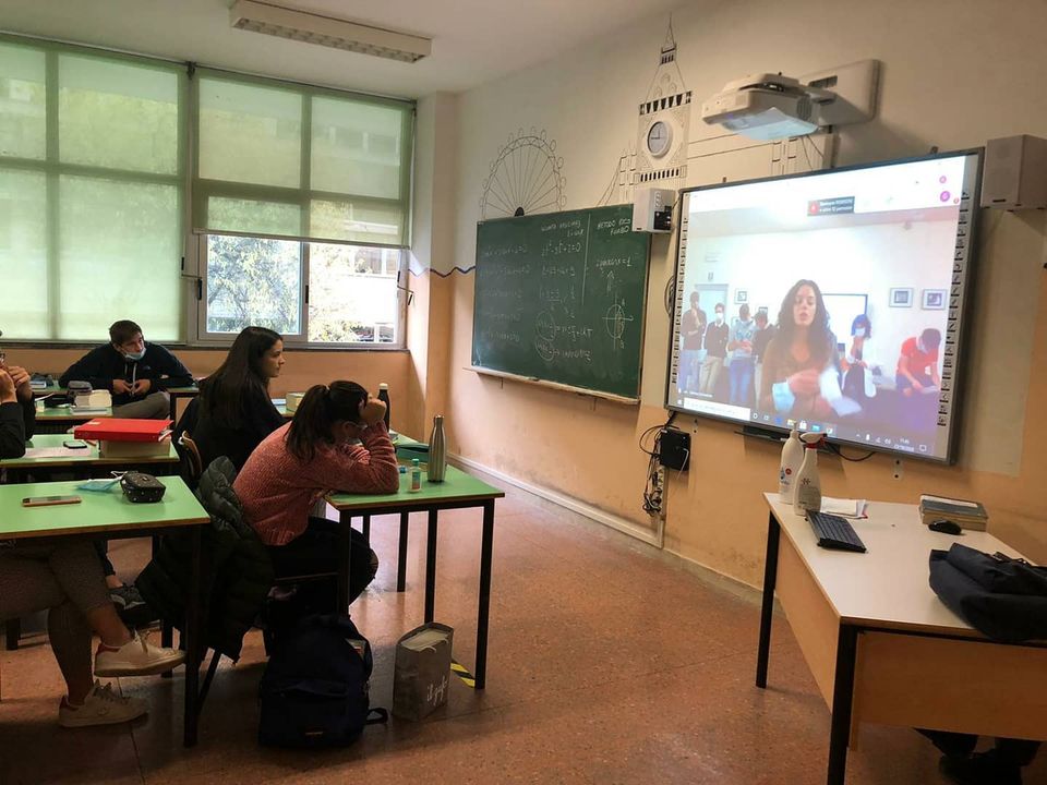 Utilizzando la piattaforma Google Suite, un sistema ad accesso limitato e protetto di cui si è dotato il Liceo, gli studenti, dalle proprie aule, si sono collegati a un’unica aula virtuale per interagire attraverso collegamenti in streaming.