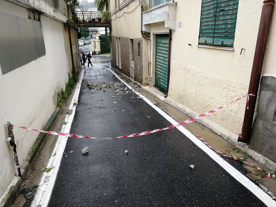 Imperia: crollano calcinacci per il forte vento