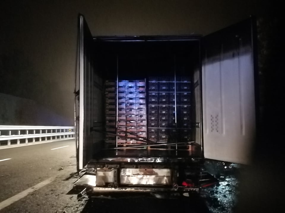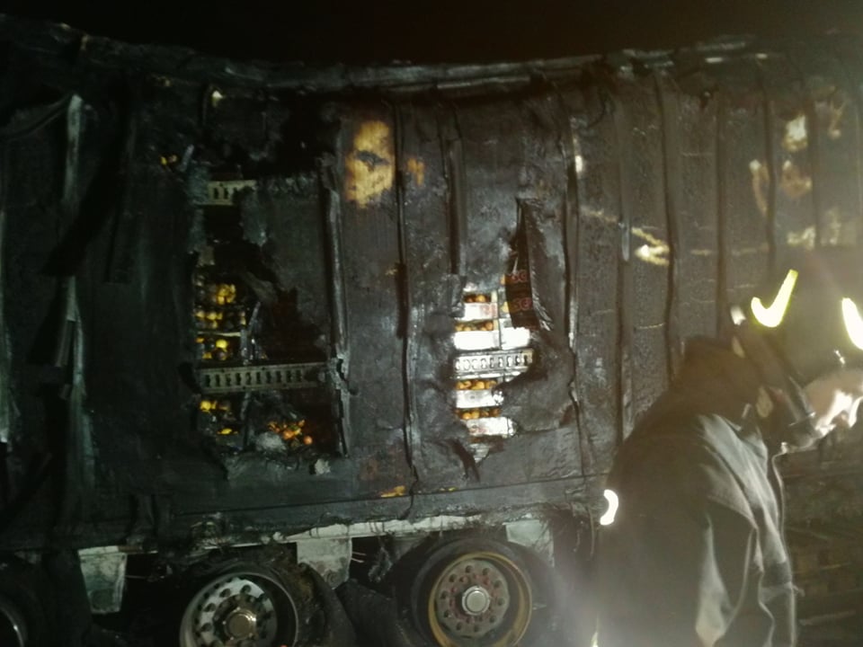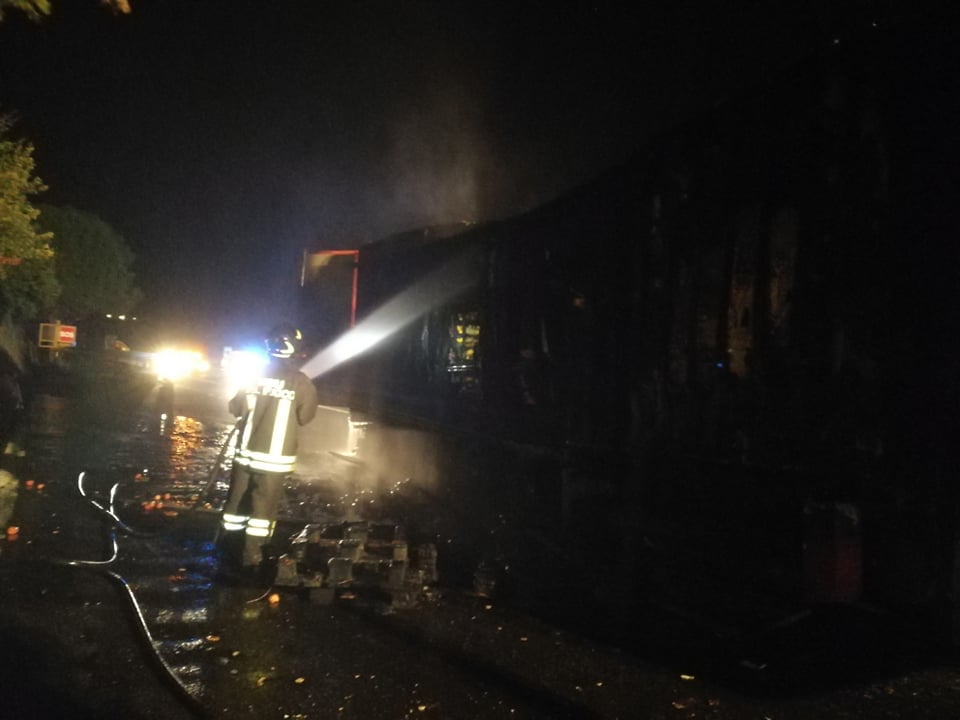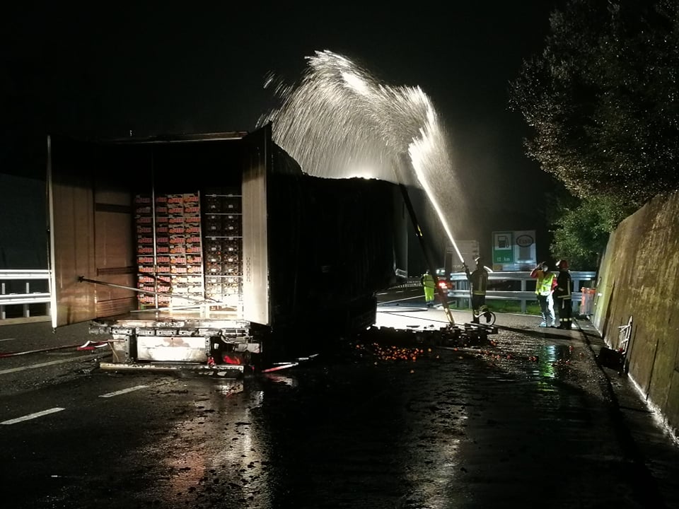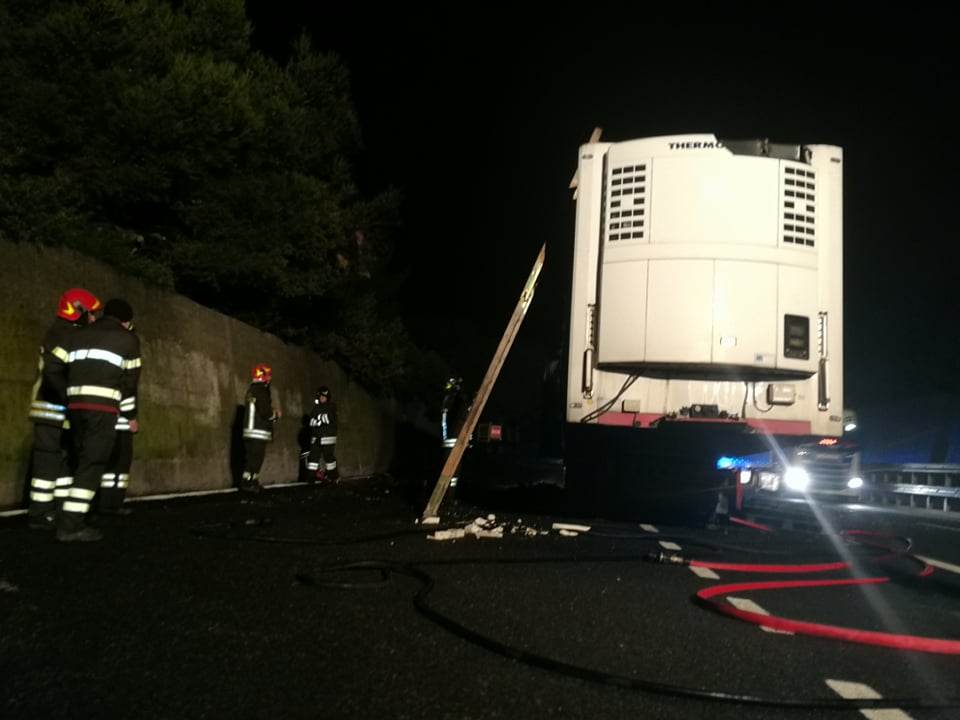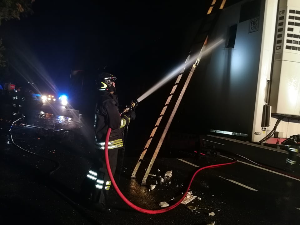 Successivamente sono intervenuti i Vigili del Fuoco, con più squadre, che sono riusciti ad avere ragione delle fiamme in poco meno di un’ora. La motrice non ha subito danni, mentre il rimorchio frigo, con un carico di arance, è andato distrutto.