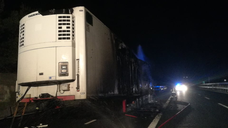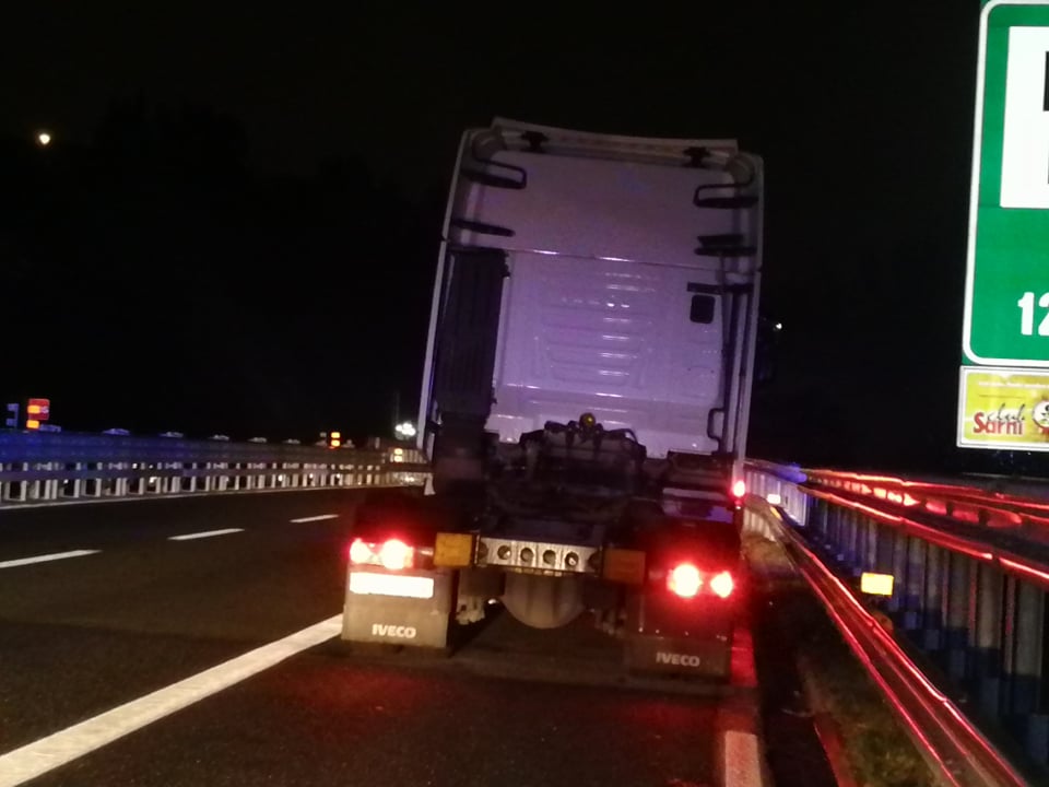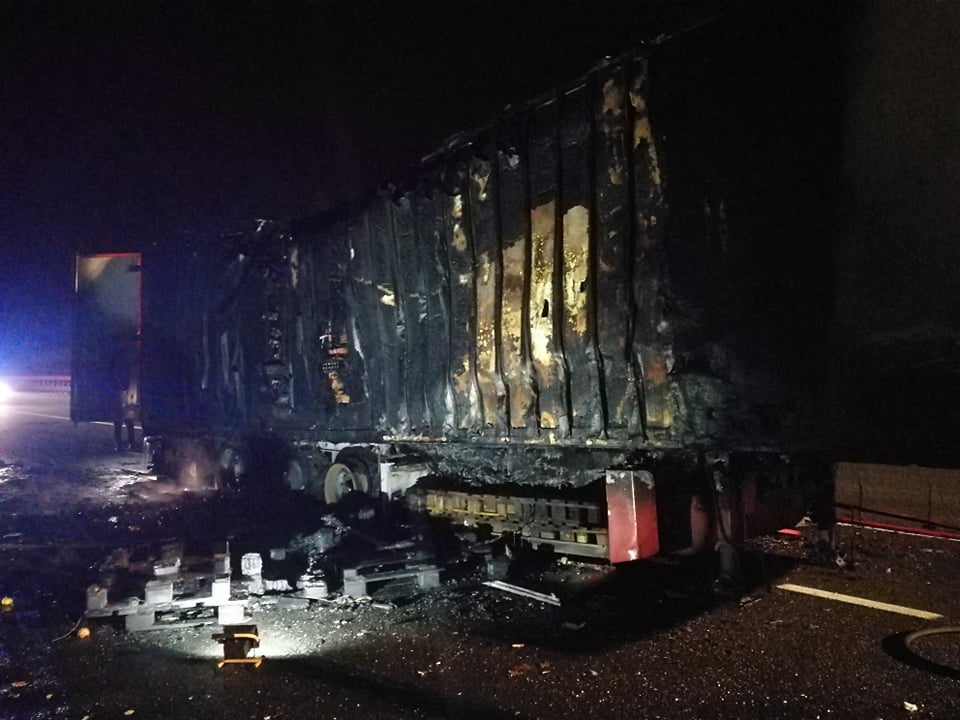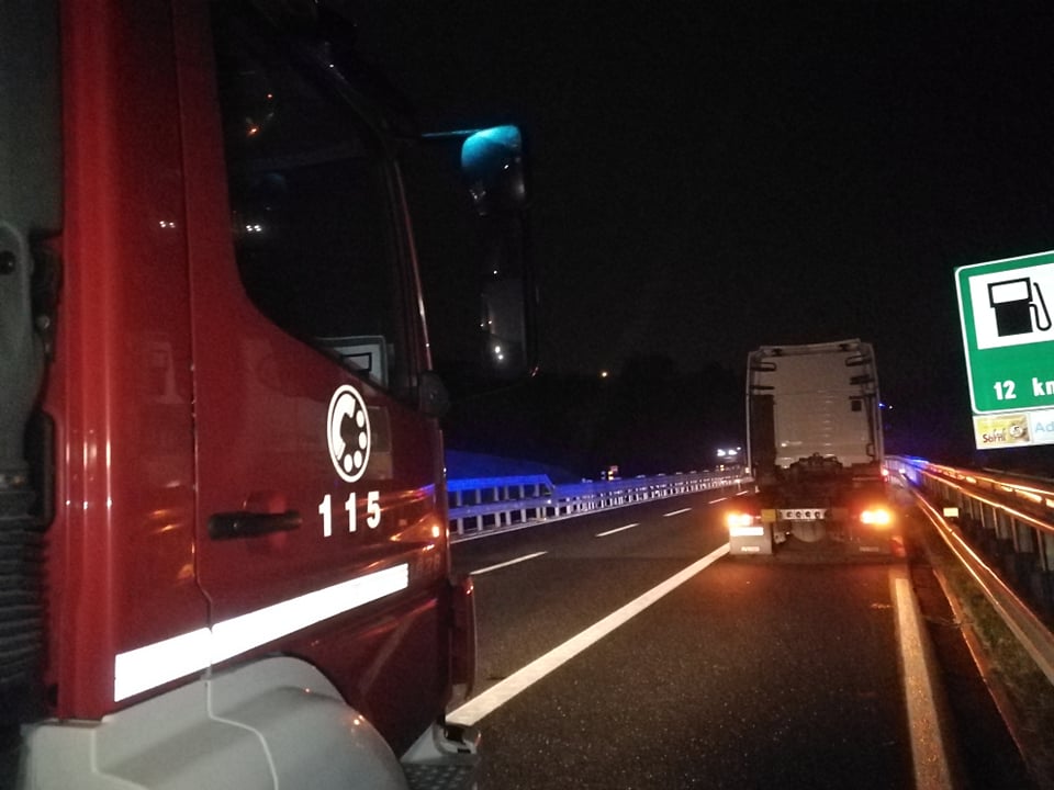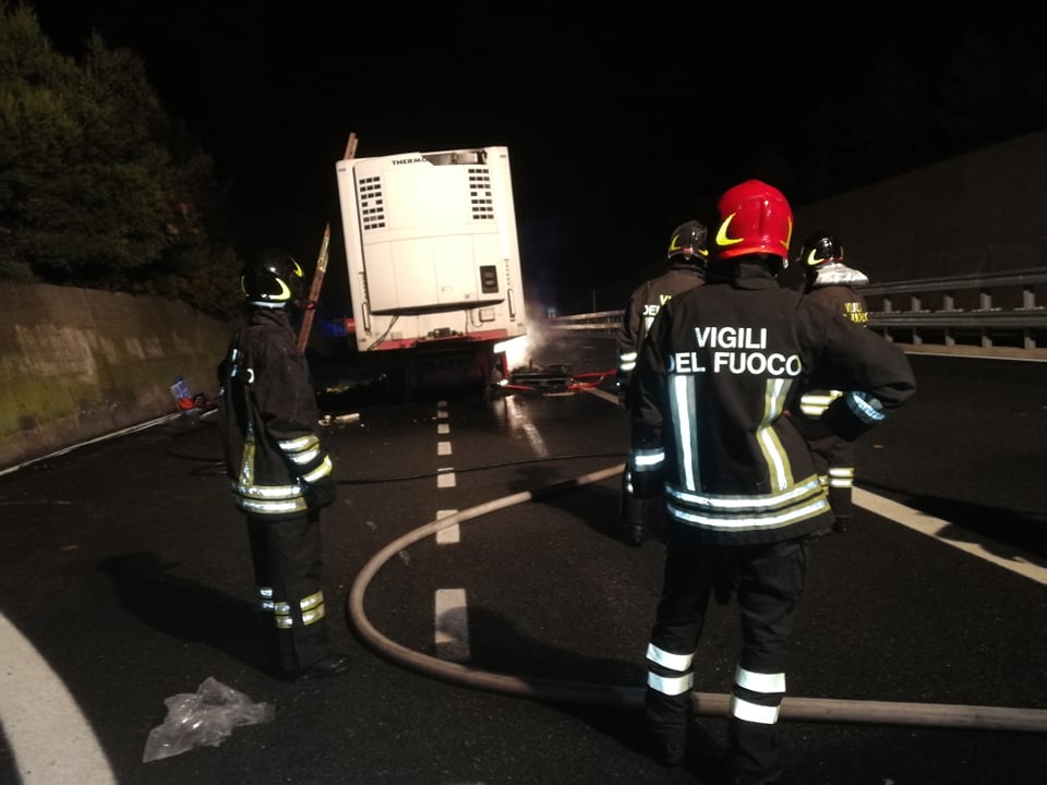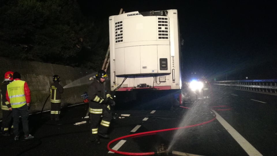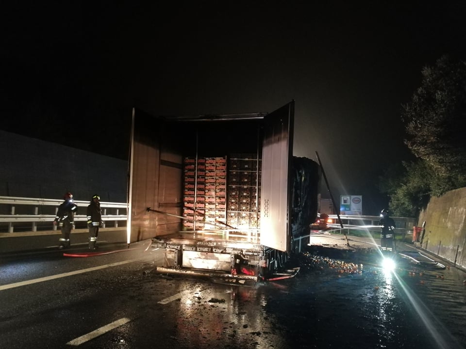 Tir in fiamme nella tarda serata di oggi sulla A10 Genova-Ventimiglia, tra Imperia Est e Imperia Ovest, in direzione Genova.