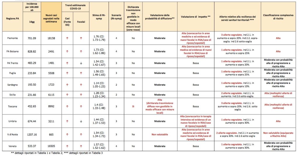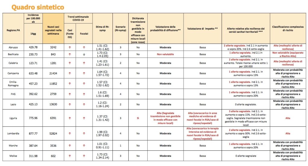 Un quadro che evidenzia la criticità della situazione e sul quale si basa la decisione di rendere la regione “zona arancione”.