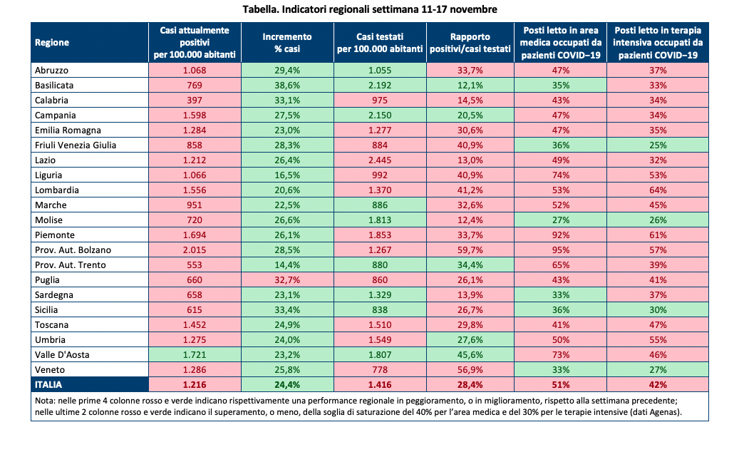 È questo l’allarme lanciato dal presidente della Fondazione Gimbe Nino Cartabellotta, alla luce dell’ultimo report aggiornato ai dati del monitoraggio della settimana 11-17 novembre, nell’ambito dell’emergenza Coronavirus in Italia.