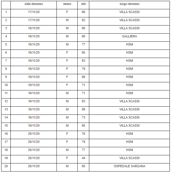 In totale sono 20 i decessi, nessuno nell’imperiese.