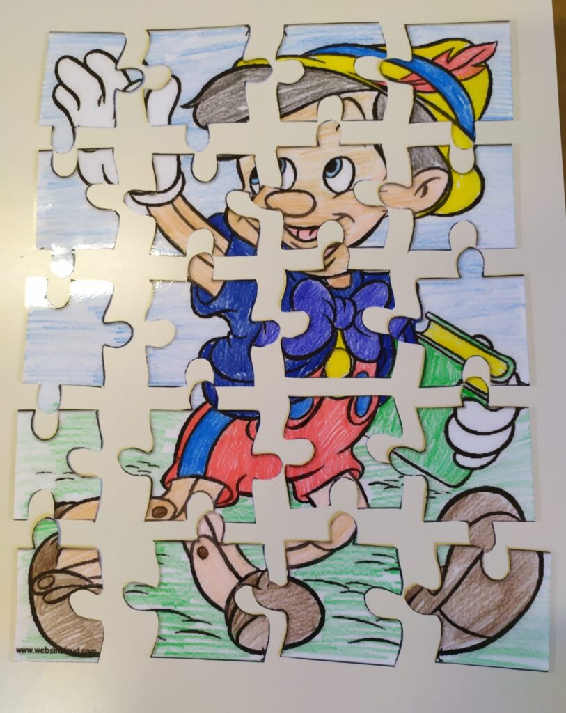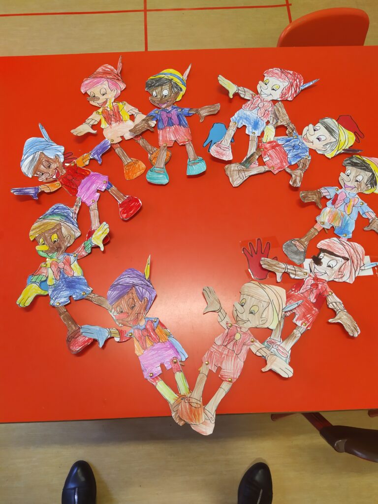 I nostri bambini lavorando con impegno e assiduità hanno prodotto numerosi burattini, un teatrino Kamishibai e i puzzle di Pinocchio. A seconda della fascia d’età hanno realizzato, grazie alle loro capacità manuali e creative, i disegni della storia che rappresentano i personaggi preferiti, i momenti salienti della favola e un grande burattino con il corpo in movimento.