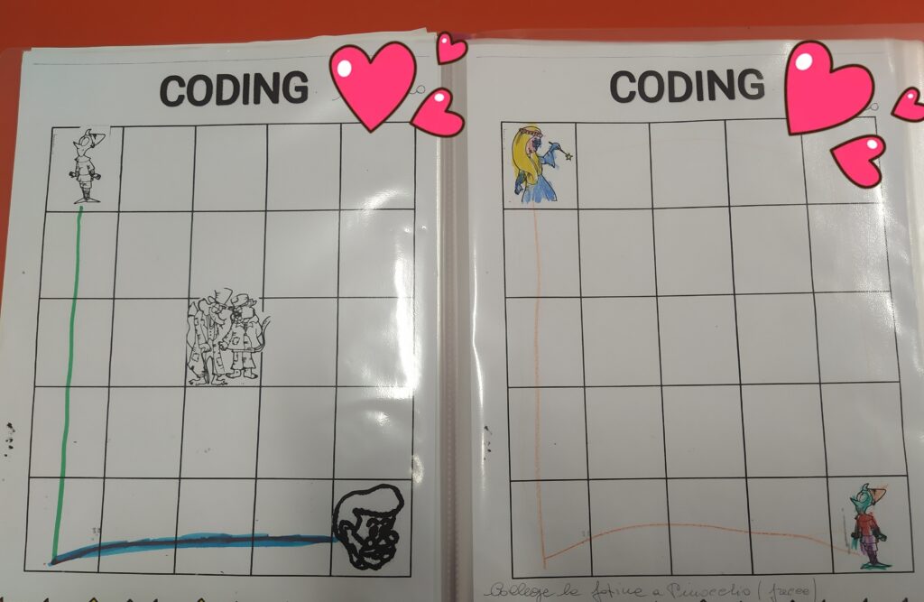 Facendo un esempio pratico si tratta di una serie di istruzioni in sequenza da eseguire per risolvere un problema, come superare un ostacolo, arrivare a una destinazione o raggiungere uno scopo. Scegliere l’approccio ludico si è dimostrato indubbiamente strategico perché è riuscito a catturare in maniera efficace l’attenzione e a trasformare il lavoro in gioco, avvicinando anche gli elementi più distratti. In una fase successiva prevediamo che saranno gli stessi bambini, famigliarizzando con il coding nelle sue varianti, a inventare nuove situazioni e istruzioni compiendo il salto di ragionamento e diventandone autori.