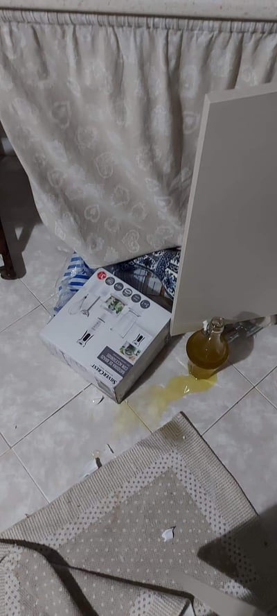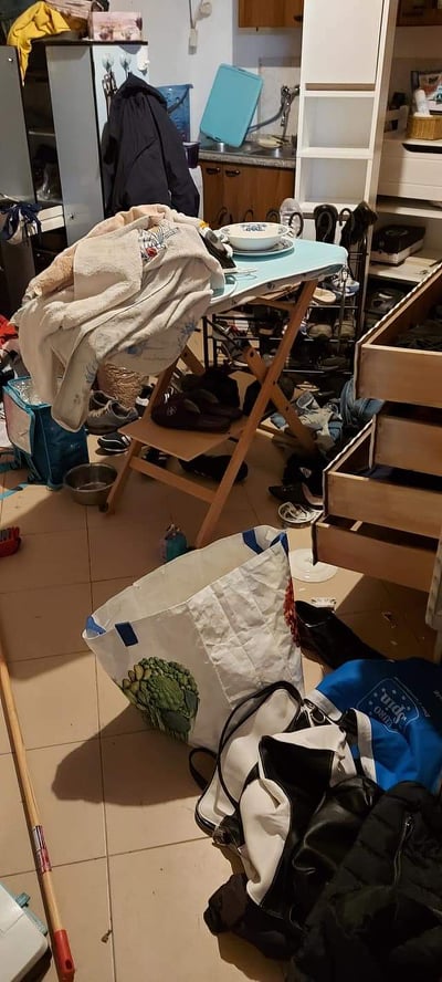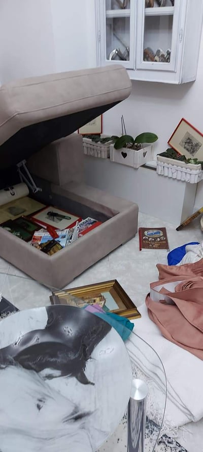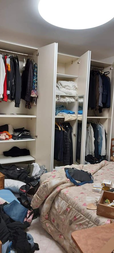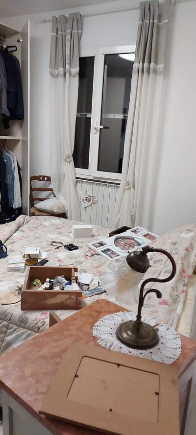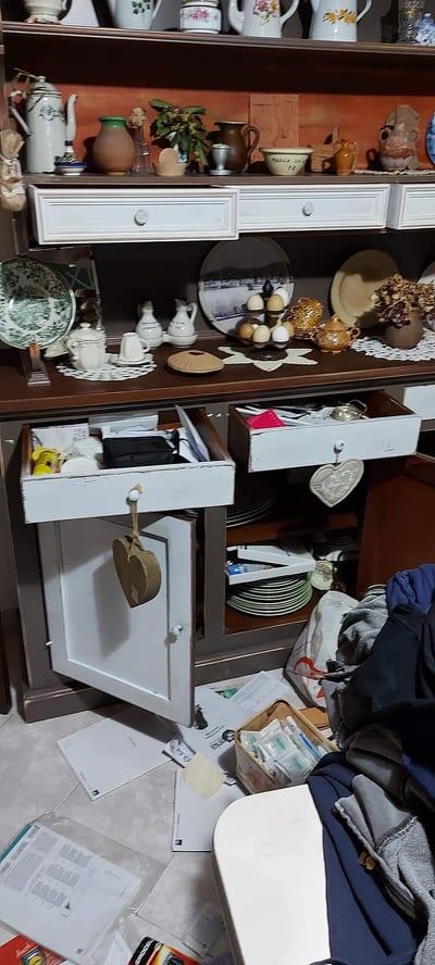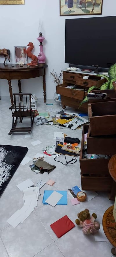 Qualcuno era entrato in casa e aveva sfasciato tutto. Sono entrati dalla finestra del bagno del secondo piano arrampicandosi sul tettuccio della porta. Hanno rotto il vetro e la zanzariera. Una volta dentro hanno svuotato qualunque armadio e cassetto, buttando tutto per aria e camminandoci sopra con le scarpe piene di fango.
