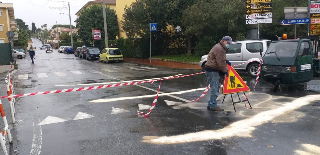 Per questo motivo, il tratto interessato, tra la rotonda delle “Quattro Strade” e Diano Castello, è stato chiuso dalla Polizia Municipale al traffico e ai pedoni, in attesa dell’intervento di bonifica.